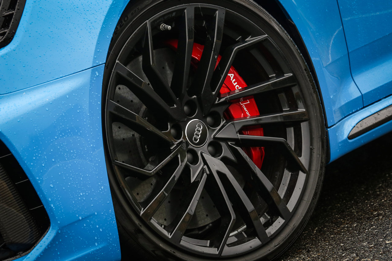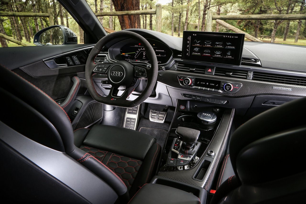 Lo que no varía es el aspecto musculoso del coche, que mantiene unos pasos de rueda ensanchados para poder acoger unas vías 30 mm más anchas. El RS 4 Avant pasa más o menos inadvertido para cualquiera para el que los coches no sean más que un mero medio de transporte. Sin embargo, para los que nos gustan los aparatos de cuatro ruedas es un verdadero caramelo gracias a sus múltiples detalles deportivos. Como las numerosas y generosas entradas de aire, los apéndices aerodinámicos, las enormes llantas de 20 pulgadas o los gigantescos frenos, que opcionalmente pueden ser cerámicos con discos con un diámetro de 400 mm (delante, como en la unidad de las instantáneas).