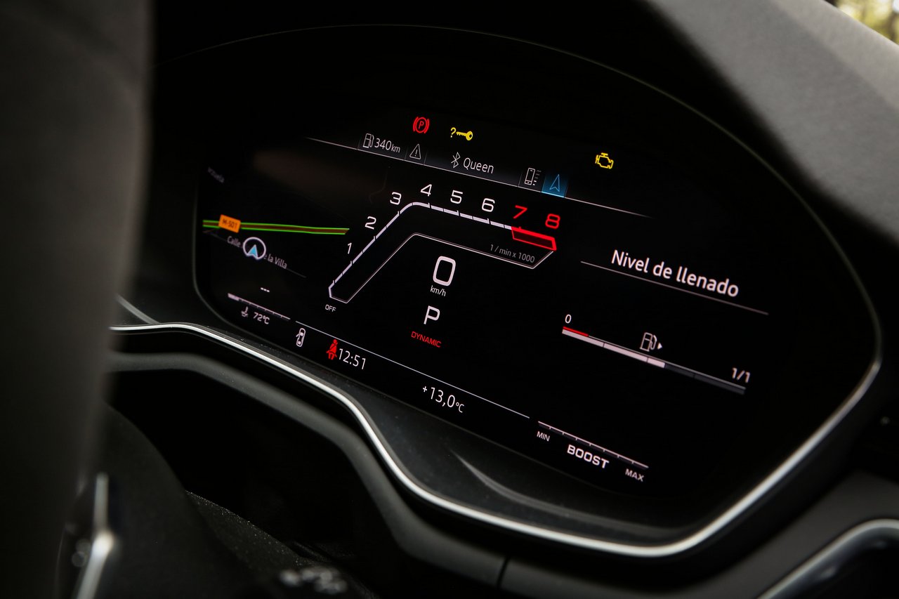Y ya que hablo de las marchas, decirte que este V6 está ligado de serie a una caja de cambios automática con convertidor de par y ocho velocidades. Esta, a su vez, trabaja junto con el sistema de tracción quattro que en condiciones normales envía más par al tren trasero (40% delante y 60% detrás). Cuenta con un diferencial central que además es capaz de variar ese porcentaje en función de las condiciones de la calzada, pudiendo enviar hasta un 70% del par al eje delantero y hasta un 85% al posterior. Y a esto hay que añadir un control de estabilidad que es capaz de frenar selectivamente cada rueda para ayudar a girar e incrementar todavía más el agarre.