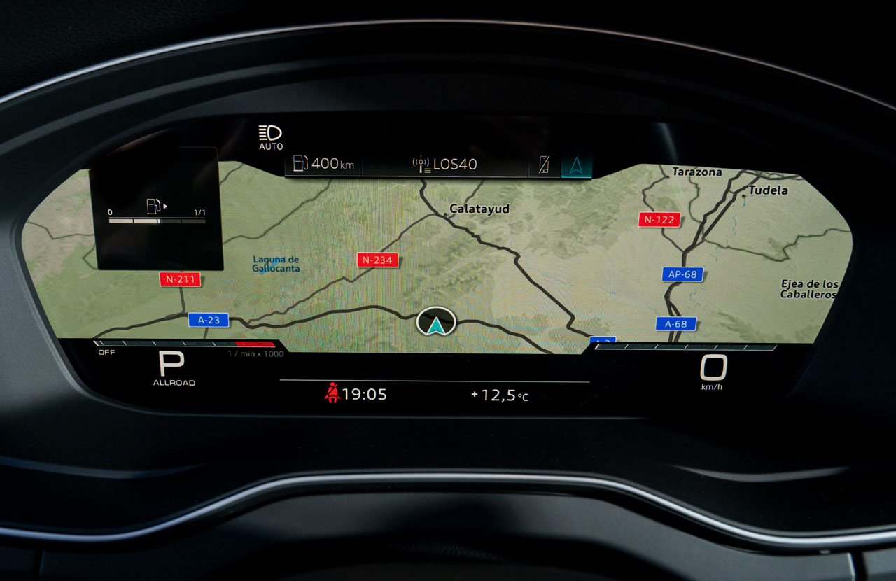 Equipa la pantalla del MMI touch, que es de 10,1 pulgadas con el sistema MIB 3, y mantiene el cuadro de instrumentos digital 12,3 pulgadas con tres modos de visualización: Dynamic, Sport y Classic. Opcional es el head-up display (1.370 euros).
