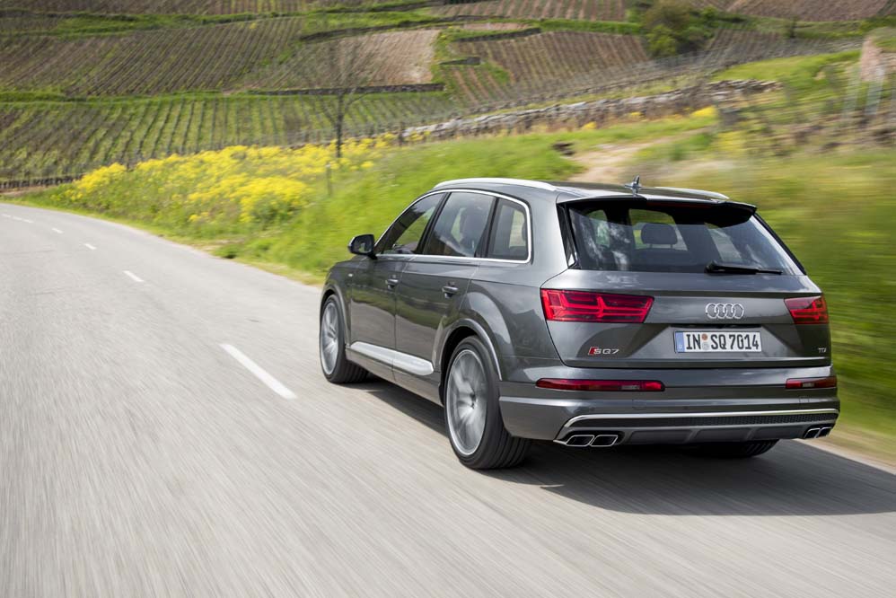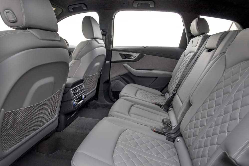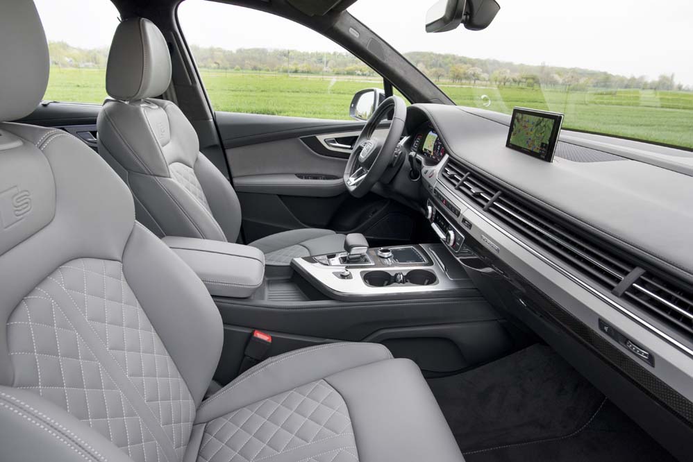 Si ya de por sí el Q7 impone (ver prueba Audi Q7 2015), el primer modelo ’S’ de la gama lo hace aun más, aunque dependiendo del color de la carrocería, hace que su deportividad, propagada por sus 5,07 metros de longitud, pase más o menos desapercibida. Acoge unas enormes llantas de aleación de hasta 22 pulgadas, paragolpes dimensionados, escapes trapezoidales dobles, entradas de aire laterales y elementos en negro piano y aluminio. Ayudan los faros de diseño tridimensional -LED de serie y Matrix LED en opción-, que tienen una firma de doble flecha, y los intermitentes traseros, que son dinámicos.