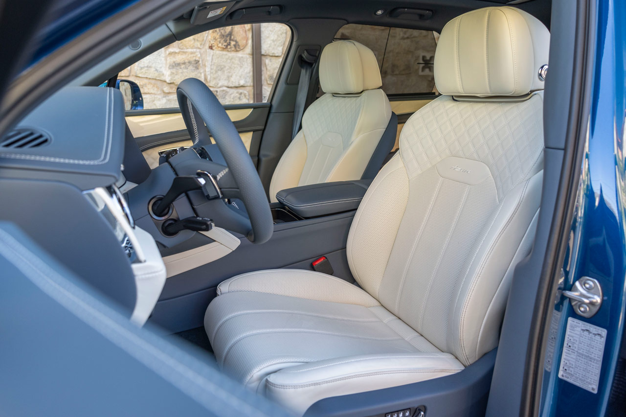 Por fuera, por sus proporciones, impresiona, y eso que no es la versión de batalla extendida con sus 5,32 metros de longitud. Da igual, porque con sus 5,14, su 1,99 de anchura y su 1,73 metros de altura, impone. Claro que esas llantas 'Directional' pintadas en negro, de cinco radios, 22 pulgadas y con el embellecedor del buje sin girar (460 euros) también ponen su granito de arena.