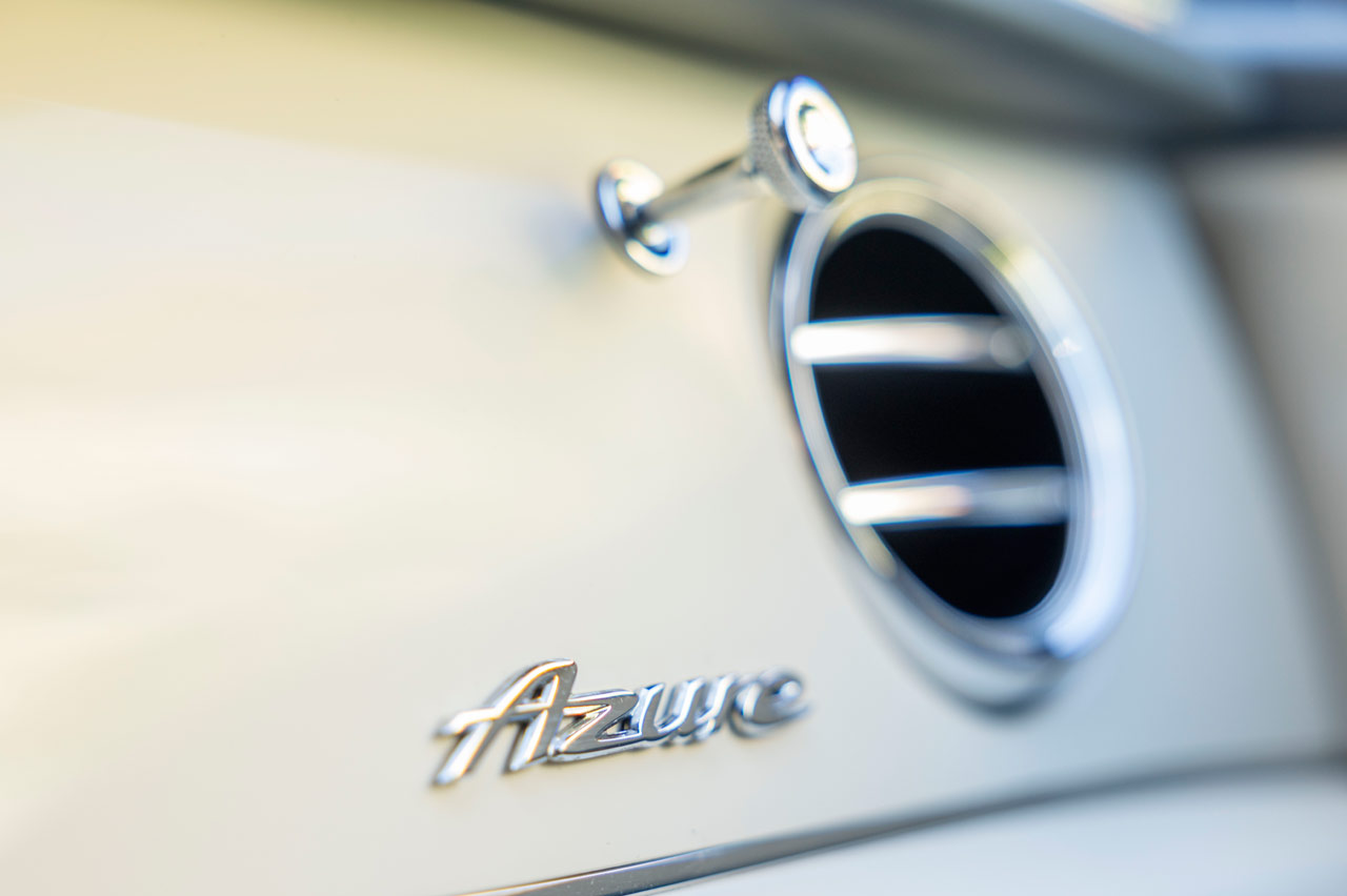 Accedo al interior, y lo primero que veo es el embellecedor del umbral de la puerta con la palabra Azure iluminada. Después, la espectacular combinación de cuero en color Line (lino) con Imperial Blue (azul) y las molduras en 'Piano Linen', un blanco brillante que me retrotrae a puestos de mandos de automóviles de los 60 como el (prueba) BMW 507 o el (prueba) Porsche 356.