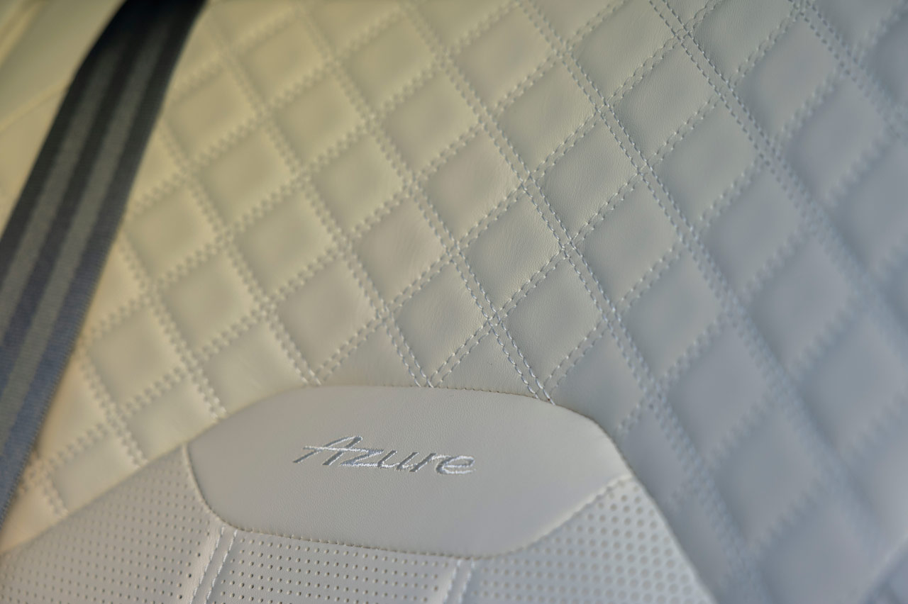 La unidad de pruebas adopta diferentes elementos en negro, además de las llantas, como la parrilla, las rejillas de ventilación del paragolpes delantero, la palabra Azure de los laterales o los embellecedores de los pasos de rueda y los que recorren la parte inferior de la carrocería -que de serie, todos ellos, son cromados-.