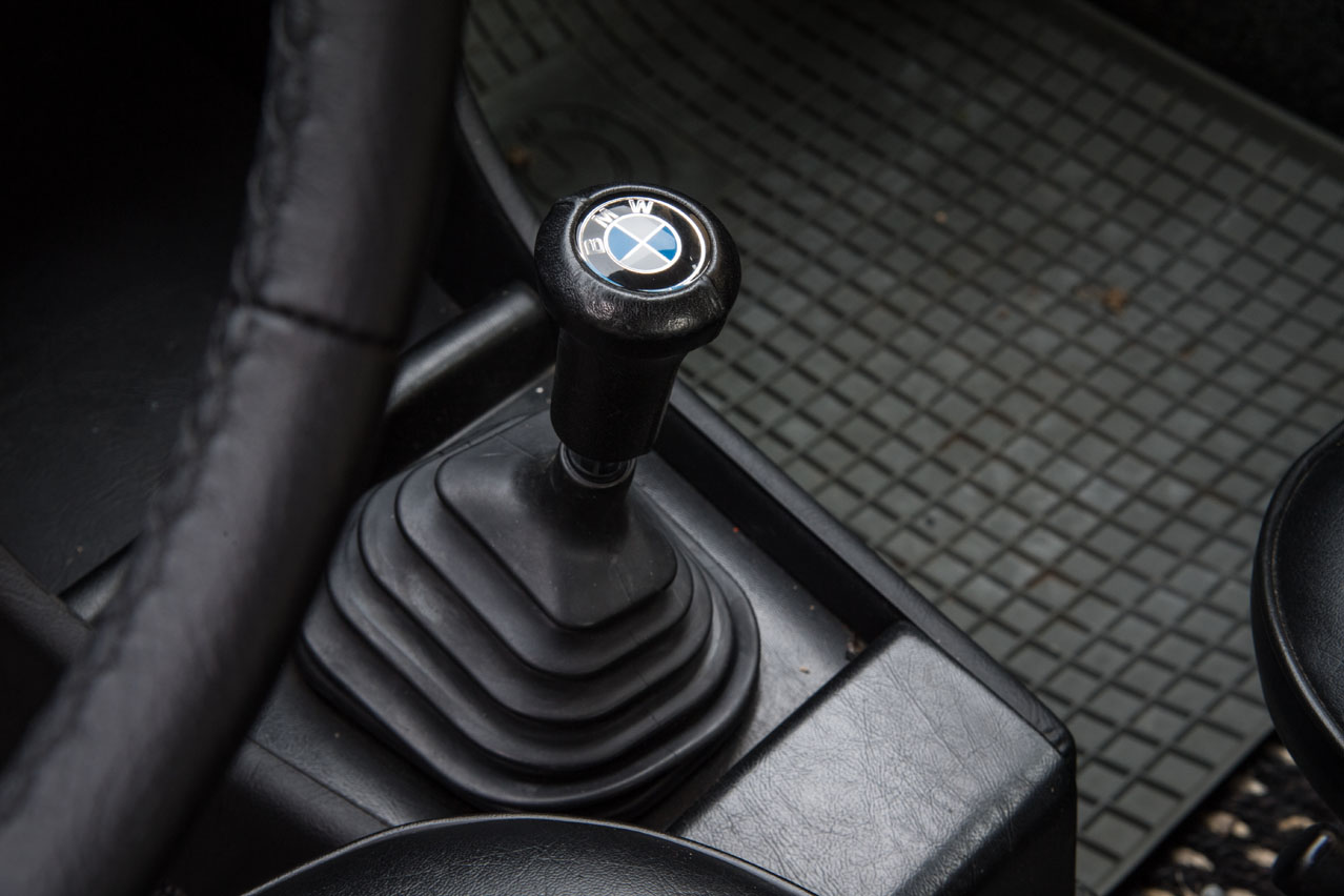 Meto la llave en el clausor, la giro y el motor se pone en marcha dócilmente sin tener que hacer nada más. Piso el embrague y tanteo todas las marchas (que son cuatro más la marcha atrás) mientras hago un poco de tiempo para que el aceite llegue a todos los rincones. Sin dirección asistida y con neumáticos 175 en llanta de 13 pulgadas, me imagino que no va a ser suave la maniobra, así que voy soltando el embrague ligeramente para que el coche avance lentamente mientras giro la dirección, que da algo más de 4 vueltas entre topes. No es tan pesada como recordaba, pero sí lenta debido a su desmultiplicación.