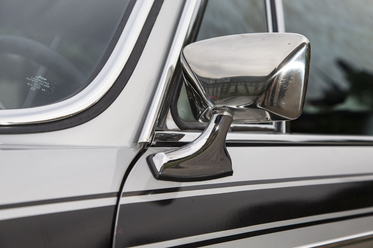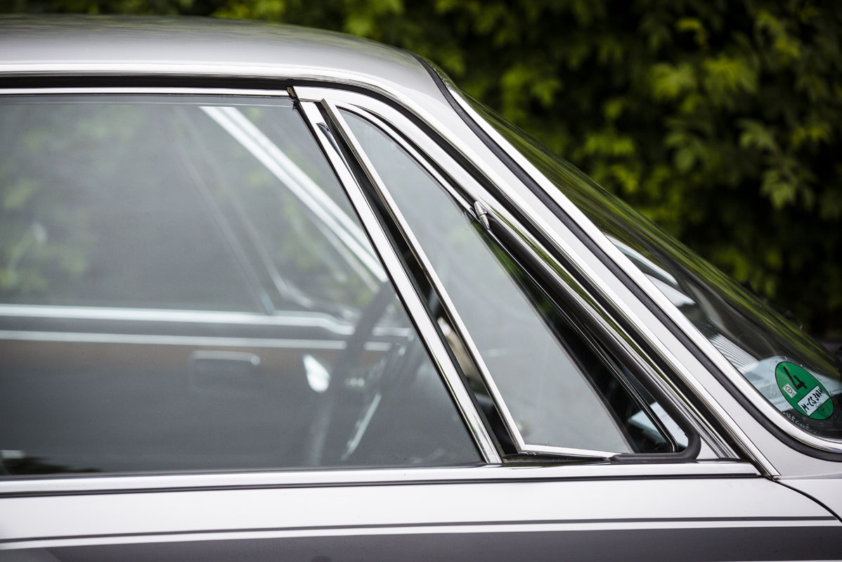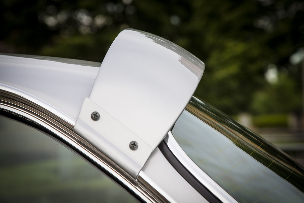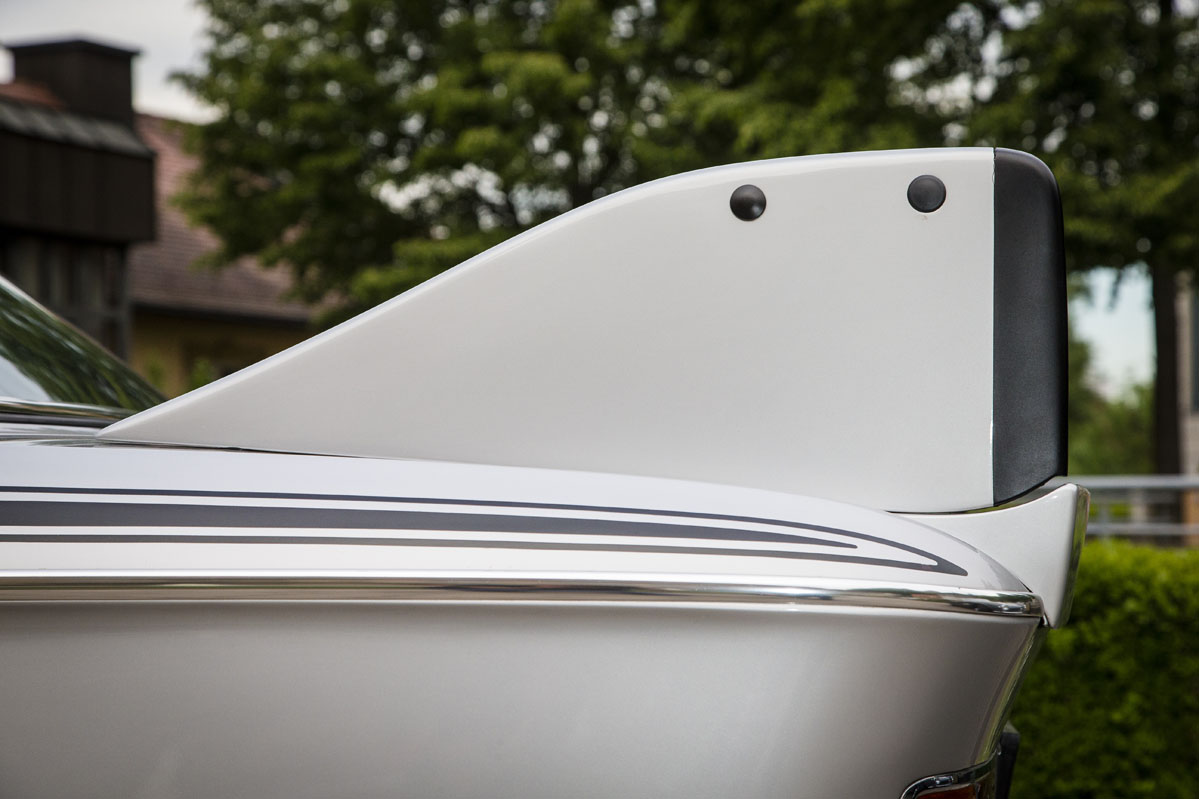 Las aletas sobre los pasos de rueda delanteros también tienen su gracia, pero me resulta extraño el eliminar los parachoques cromados (que son preciosos) para eliminar peso, y que le hayan añadido unos aletines cromados que son elegantes, pero no casan con el resto del coche y su enfoque de competición.