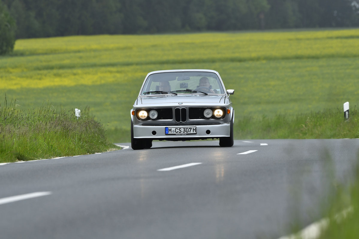 Pese a su aspecto de deportivo radical con el kit aerodinámico, ni los frenos, ni la caja de cambios de cuatro marchas ni la dirección invitan a una conducción realmente deportiva, aunque el coche es muy rápido. Con una quinta, una dirección asistida algo más rápida y unos frenos gordos harían que fuese perfecto. Esto es lo que opino con la mentalidad de un conductor actual, pero debo trasladarme a lo que había en el mercado en 1974. El primer rival que me viene a la mente sería el Alfa Romeo GTV 2000. Ése sí tenía 5 marchas, frenaba bastante bien y admitía una conducción con el cuchillo en los dientes, pero tenía una dirección todavía peor que la del 3.0 CSL y casi 70 CV menos. El Citroën SM frena mucho mejor, tiene una dirección infinitamente mejor y caja de cinco. En autopista probablemente el francés le sacase los colores al BMW, pero en un puerto de montaña el CSL le arrancaría la cabeza gracias a un peso de un cuarto de tonelada menos, sus 30 CV extra y una puesta a punto más sport que la del confortable GT de Citroën. Más o menos lo mismo sucedería frente a un Fiat 130 Coupé.