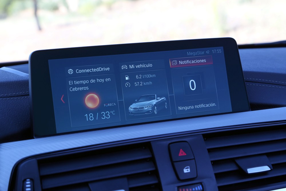 Encuentro también otro aspecto que merece una mención aparte. Se trata de la climatización, ya que BMW no ha diseñado el Serie 4 Cabrio para limitar su uso a los meses de calor (tampoco es muy recomendable llevarlo descubierto en el verano del sur español), por lo que quiere que lo disfrutemos los 365 del año. Para ello ha instalado un sistema de calefacción para el cuello, denominado Air Collar por la marca, situado en la base de los reposacabezas de los asientos delanteros que se regula con tres niveles de potencia. Acompañando a éste encontramos los asientos y el volante calefactables, así como el climatizador bizona.