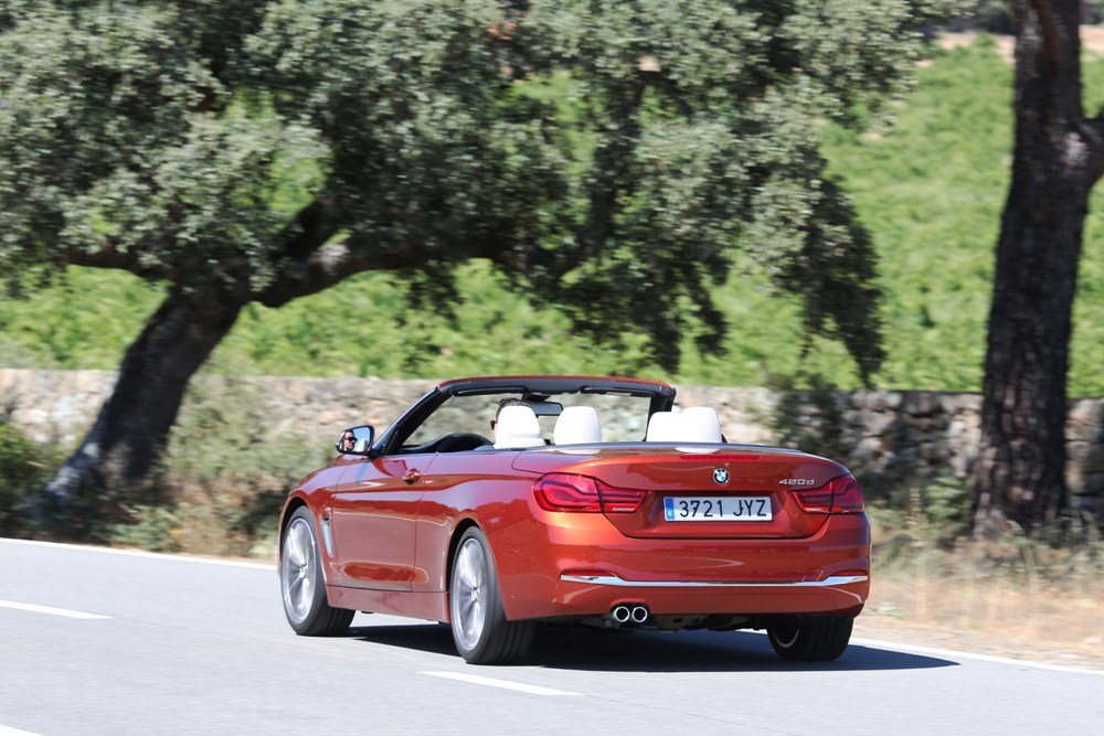 Muy a diferencia de lo que son otros descapotables en cuanto a sensaciones, como el Alfa Romeo 4C Spider (prueba), el 420d Cabrio 2017 cuenta con un elevado nivel de confort, algo que hereda directamente de su hermano de cuatro puertas, el BMW Serie 3 (prueba). Sin embargo, presenta dos puntos a mejorar. El primero es el tiempo de plegado y desplegado del techo, ya que requiere de 30 segundos con las ventanillas subidas y solo se puede realizar a velocidades de hasta 18 km/h, un punto en el que un roadster con techo de lona, como el Audi TT Roadster (prueba), es ligeramente mejor, ya que el tiempo se reduce a solo diez segundos y la velocidad máxima es 50 km/h.