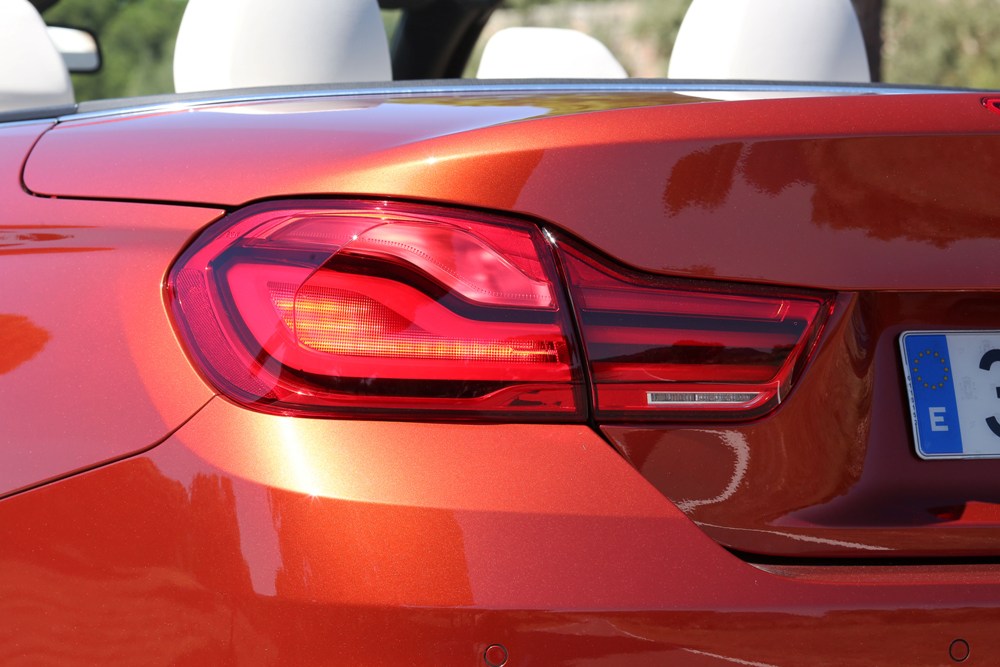 El BMW Serie 4 2017 incluye una serie de cambios a nivel de estilo, aunque sutiles para no perder la esencia del modelo. Al igual que el BMW Serie 3, la versión Coupé, Gran Coupé y Cabrio estrenan un parachoques rediseñado con entradas de aire más grandes, así como un conjunto de faros LED, completos y de serie en toda la gama, y un grupo óptico trasero que se estrena por primera vez con tecnología LED. A todo esto, debemos añadir el cambio de imagen del parachoques trasero, las llantas de nueva talla y los dos colores de carrocería que se suman a la paleta: ‘Snapper Rocks Blue’ y ‘Sunset Orange’ -este último era el que bañaba la carrocería de nuestra unidad de pruebas-.
