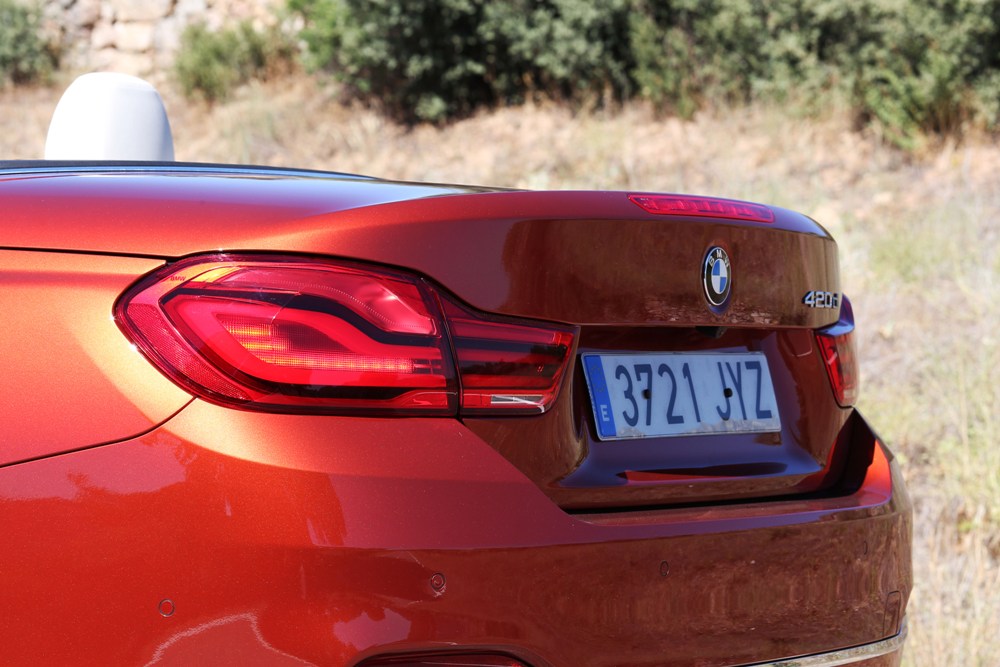 Mientras tanto, bajo el capó del BMW 420d Cabrio que he probado encontramos el conocido motor BMW TwinPower Turbo de 2.0 litros diésel y cuatro cilindros que entrega 190 CV de potencia a 4.000 rpm y un par motor máximo de 400 Nm disponibles desde las 1.750 rpm. El propulsor se asocia a la conocida caja de cambios Steptronic de ocho relaciones que canaliza la potencia directamente al tren trasero, aunque existen las variantes de tracción total xDrive. Por otro lado, esta configuración homologa un consumo en ciclo combinado de 4,4 litros a los 100 kilómetros y unas emisiones de CO2 de 116 g/km.