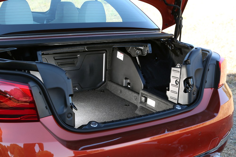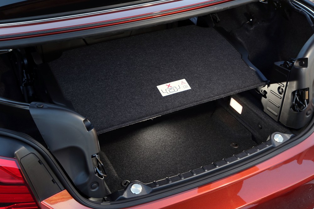 Por otro lado, el maletero del BMW 420d Cabrio que he puesto a prueba es de 370 litros, lejos del estándar de una berlina de su tamaño, que se sitúa en unos 480 litros, mientras que una vez plegamos el maletero, el espacio se reduce hasta los 220 litros y el acceso al mismo se vuelve tremendamente limitado, eso sí, delimitado por un divisor específico y teniendo en cuenta la complejidad del sistema del techo y su plegado, que se realiza en tres piezas practicables. Por otro lado, tendremos que lidiar con la presencia de las barras del propio sistema del techo que limitan un poco el acceso de objetos voluminosos al maletero, aunque el difusor que incluye de serie en el paquete Luxury con el que está equipada esta unidad de pruebas, se sitúa en un compartimento específico entre el maletero y los asientos traseros, lo que no reduce espacio útil de carga. Una solución muy inteligente y fácil de usar.