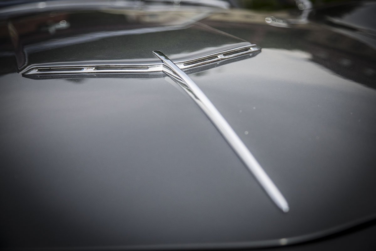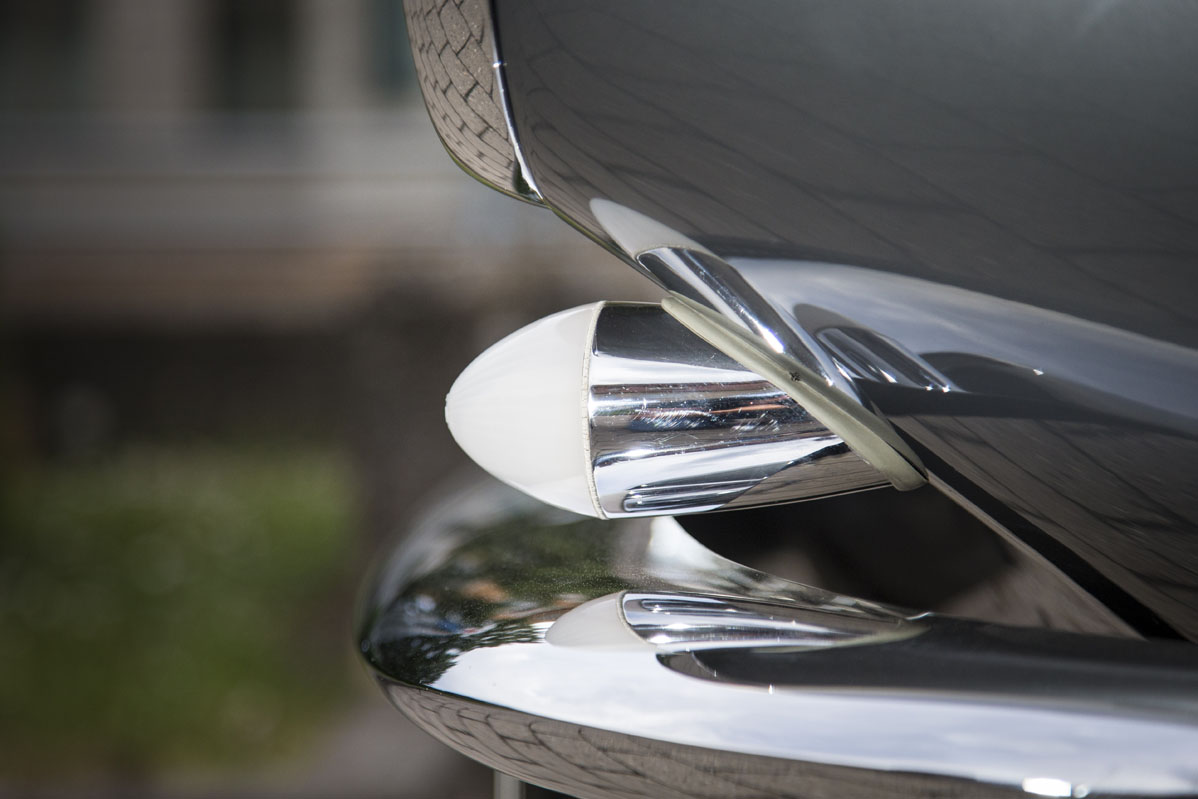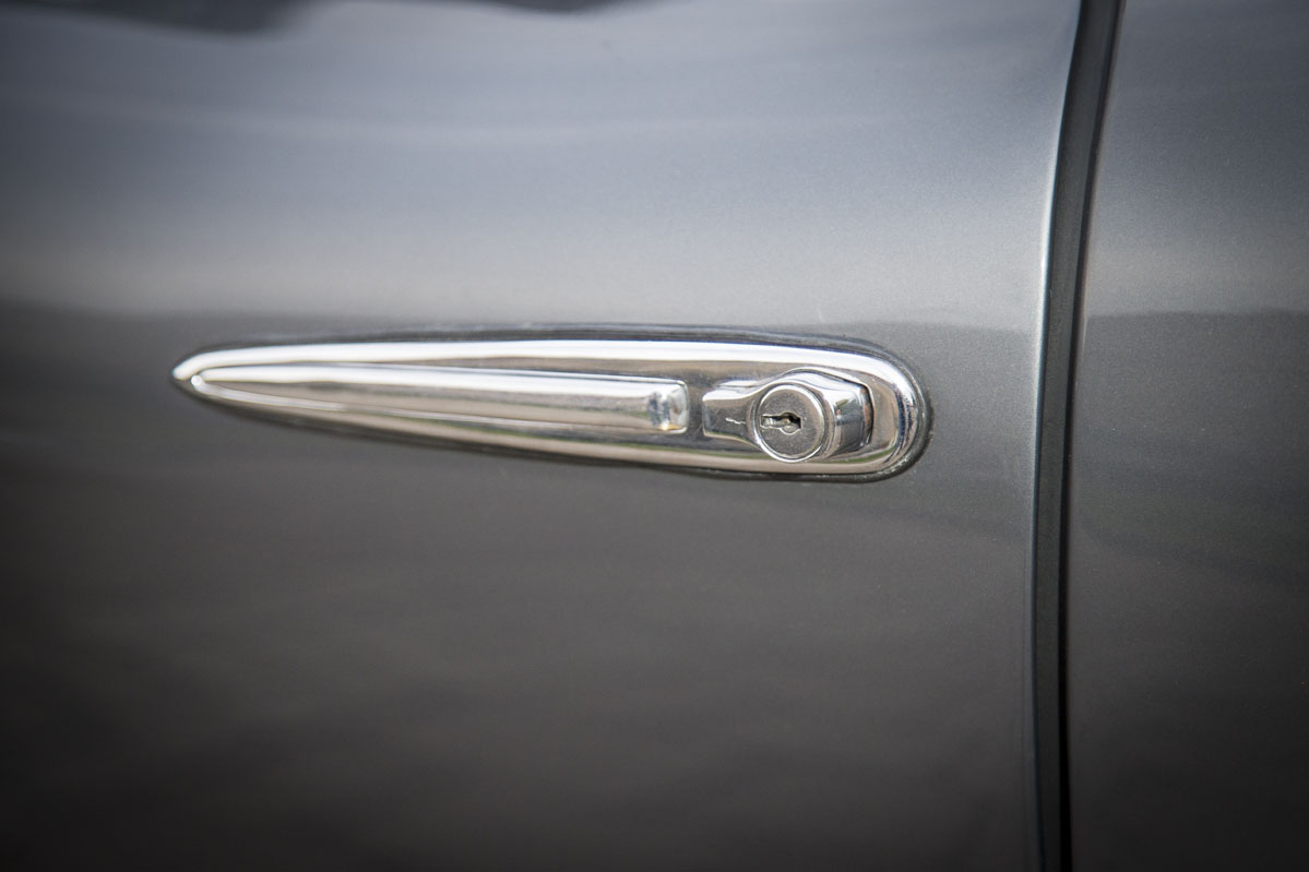 En vivo las proporciones son correctas; más grandes de lo que recordaba. El frontal es majestuoso; porta un morro muy largo que define toda su personalidad en el capó, que está rematado con un embellecedor cromado y flanqueado por las ondulaciones de los extremos que acaban en unos faros circulares. Equipa elementos cromados como la calandra, el paragolpes, los retrovisores y el marco del parabrisas, otorgándole el punto elegante a la carrocería.