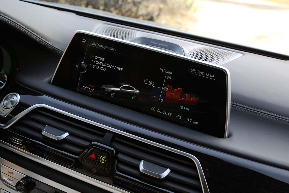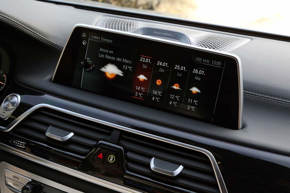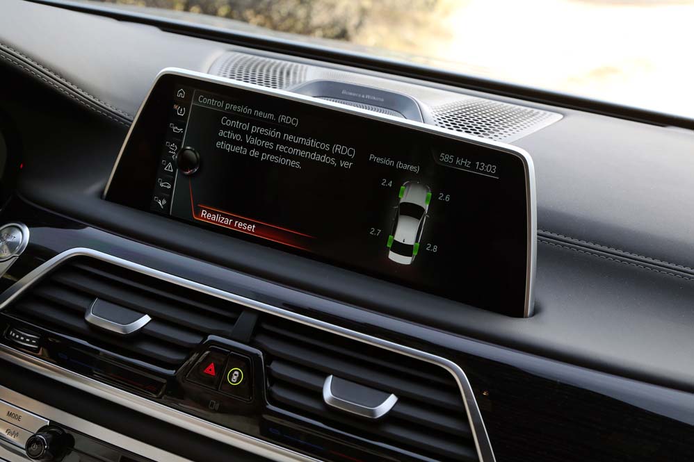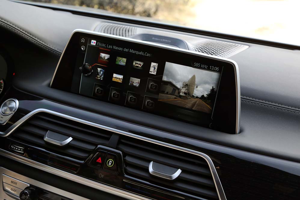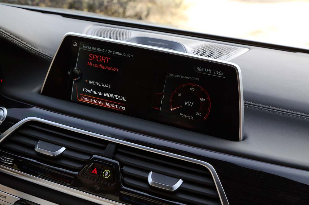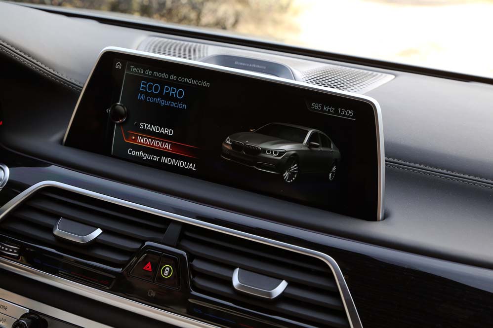 Y si me he quedado sorprendido por lo que he encontrado en las plazas delanteras, mi asombro va a más en las traseras: ventilación, calefacción y masaje se complementan con las dos pantallas de 10 pulgadas situadas tras los respaldos anteriores, desde las cuales se manejan muchas funcionalidades del coche, además de ver películas o la televisión; y todo ello accesible desde el BMW touch Command (579,92 euros), una tableta extraíble Samsung de 7" con sistema operativo Android alojada en el reposabrazos central. Pero todo ese boato se ve empañado por el espacio, y es que para ser una berlina de representación del segmento F, lo veo justo, sobre todo en altura. Creo que 90 centímetros es una cifra pobre, muy pobre. Harina de otro costal es el reservado a los hombros y a las piernas, y si te parece justo, que lo dudo, siempre puedes optar por la carrocería de batalla larga. Y es que, si hablamos de comodidad, nunca es suficiente…