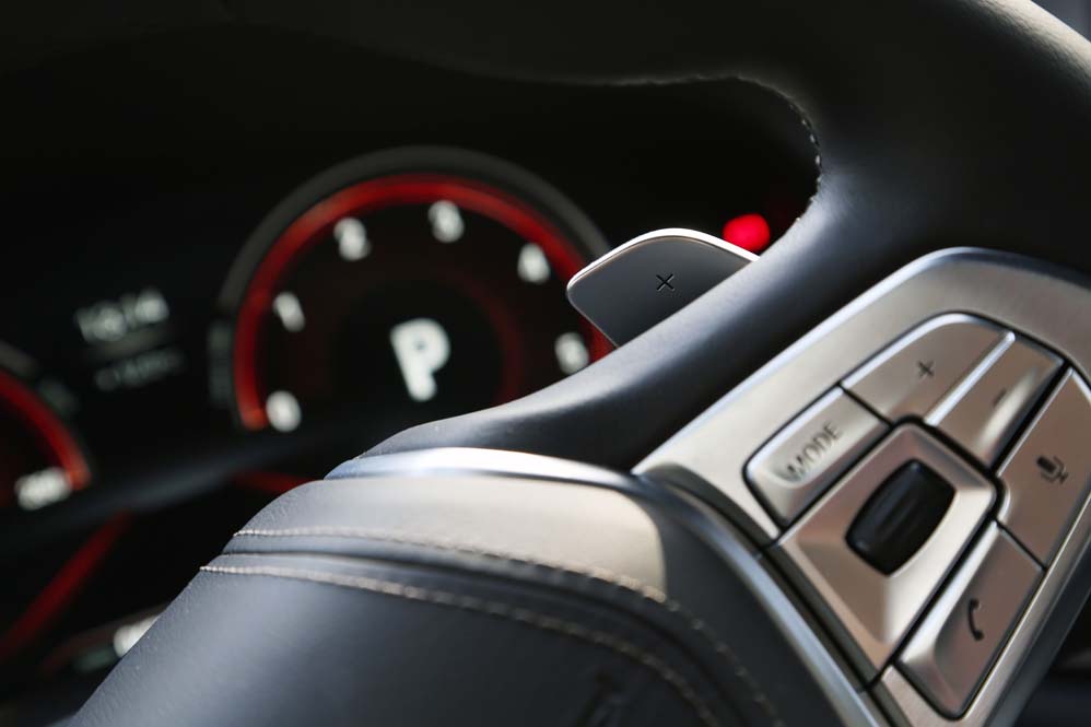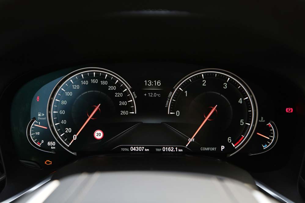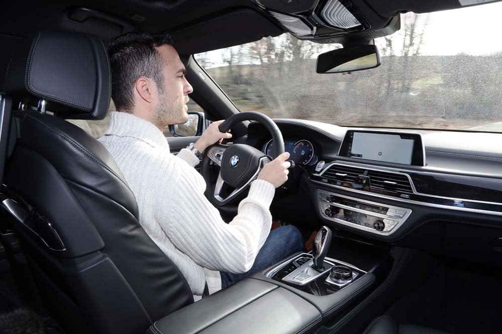Como te comentaba, disfrutar de las plazas traseras es una gozada, algo de otro nivel. Pero un vehículo de este tipo también debe ofrecer unas sensaciones al volante acorde a lo que se espera de él, y el BMW Serie 7 730d 2015 de la prueba no decepciona. Su motor, a pesar de ser el menos potente de la gama, es una delicia. Su respuesta es contundente y no se echa en falta ni un caballo más. Desde las 2.000 y hasta las 2.500 está disponible su tremendo par motor de 620 Nm y desde las 4.000 toda la potencia. Ojo, porque a pesar de sus prestaciones el consumo medio que me ha brindado ha sido de 7,5 l/100 km, una cifra espectacular para un vehículo de su tamaño. Otra de las virtudes que no corresponden a un coche de su segmento es su enorme agilidad, más propia de una berlina media. Su comportamiento en curva es realmente bueno y mucha culpa de estas buenas sensaciones las tiene su chasis realizado en fibra de carbono y las ruedas traseras directrices, sistema por el que imagino que Serie 7 que hemos puesto a prueba tiene un maletero de forma irregular.