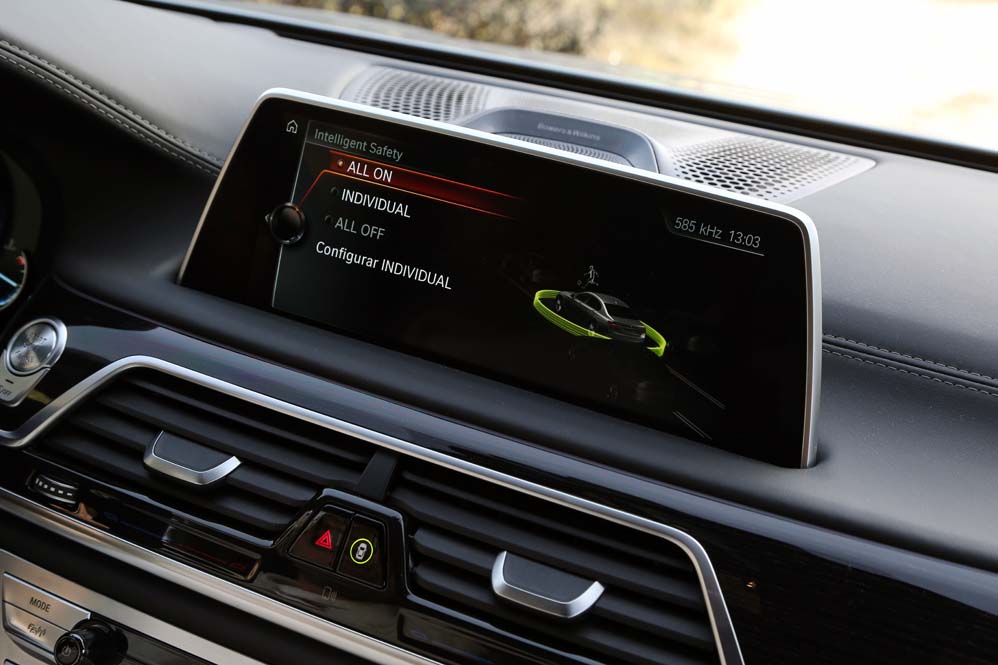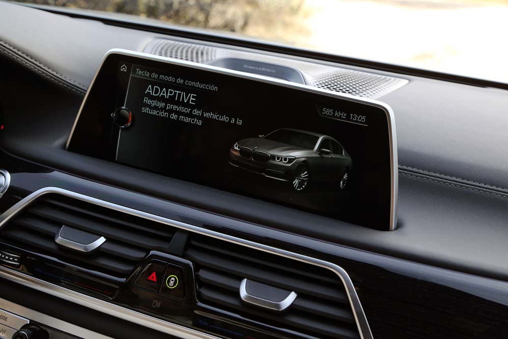 Pero, obviamente, la cosa no acaba fuera con los faros láser -es el segundo vehículo de BMW que los equipa tras el BMW i8 y tienen un precio de 2.603,76 euros-, porque, como ocurre con los Huevos de Pascua, el regalo para nuestros sentidos está en el interior. A la gran calidad del habitáculo, tanto visual como al tacto, se suma la más moderna tecnología. Una vez acomodado en sus asientos, acción muy fácil de realizar gracias a las múltiples regulaciones, incluida la doble del respaldo, te das cuenta de que estás en un vehículo de mucho nivel. Solo tengo que echar un vistazo al cuadro de instrumentos digital o a las pantallas del sistema de climatización y infoentretenimiento, ambas táctiles. La primera tiene sensor de proximidad y desde ella se puede controlar los dos aromas que equipa de los ocho existentes. ¡Viva el lujo y la distinción! Desde la segunda, ejecutar acciones mediante gestos, algo que, por cierto, lleva un periodo de aprendizaje.