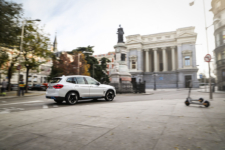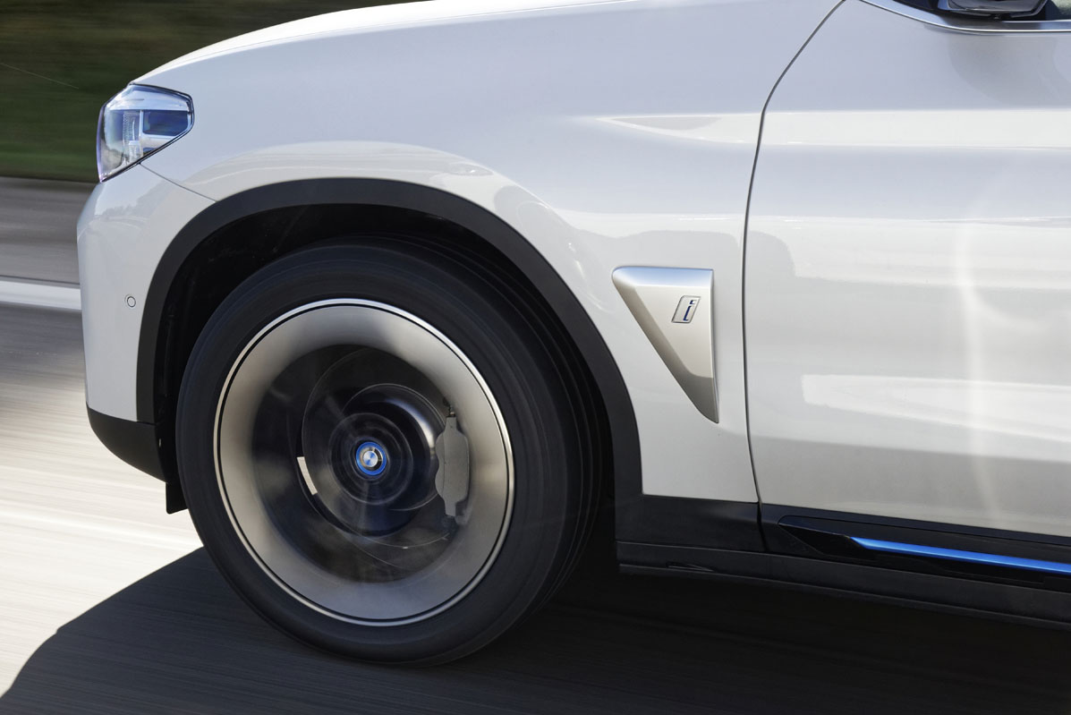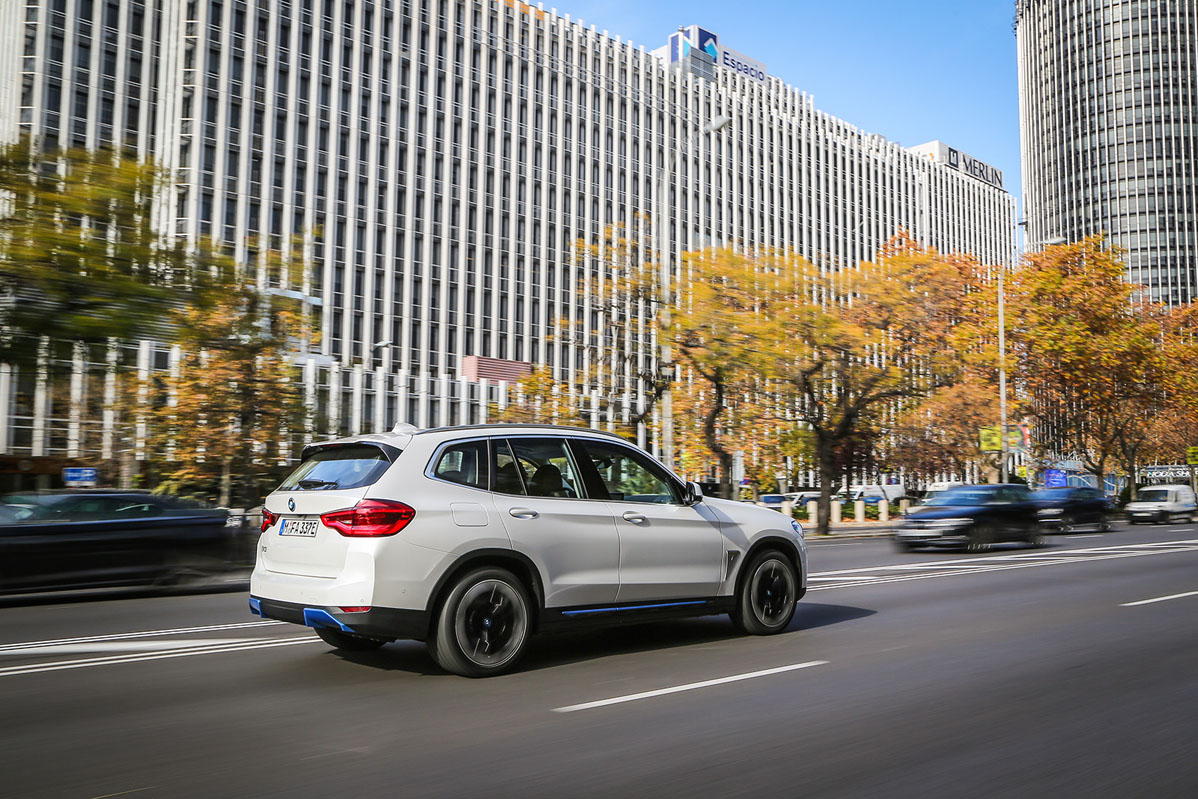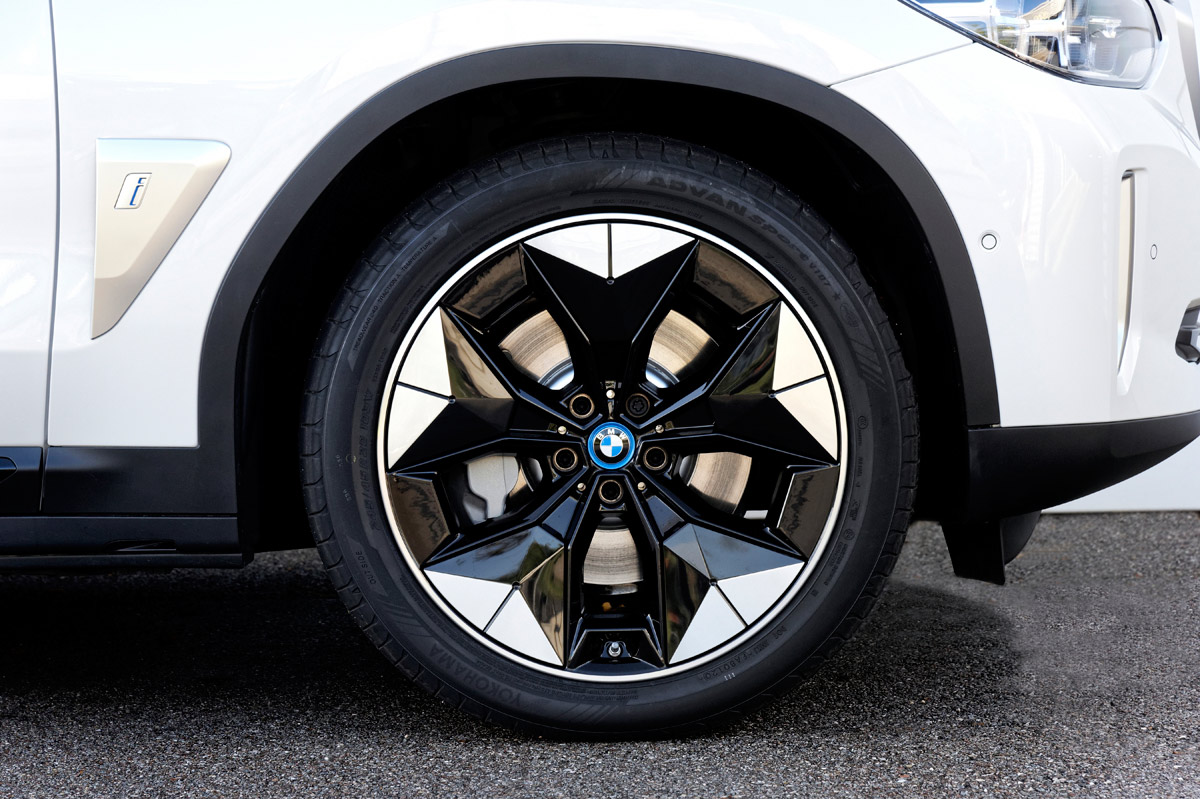 La unidad que tengo enfrente es un vehículo pre-serie, por lo que no es el coche final, aunque sí es muy cercano, como me informa Borja Hormigos, jefe de Prensa de la firma en España. Da igual, porque el diseño es el mismo, por lo que adopta rasgos que le diferencian del X3 como la parrilla, que apenas tiene refrigeración, algunos elementos en color azul, tanto en la parte delantera, como en la lateral y en la trasera; y las llantas de 20”, que son un 15% más ligeras y, lo que es más importante, aerodinámicas, por lo que mejoran un 5% el flujo aerodinámico y, con ello, aumenta la autonomía en 10 kilómetros. Que no lleve escape, como coche eléctrico que es, no llama tanto la atención, porque algunos fabricantes están prescindiendo de ello en automóviles con motor de combustión o, peor aún, montando colas falsas.