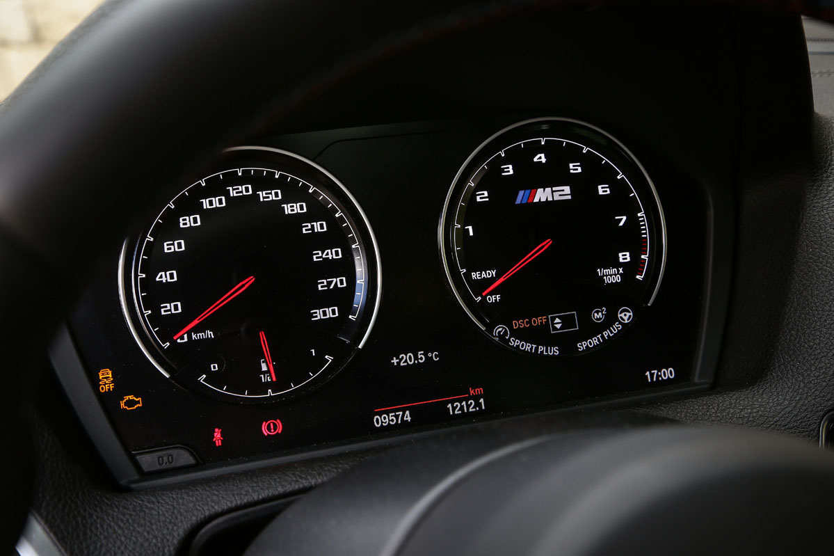 En los primeros metros percibo dos cosas: la primera es que el sonido, más bajo y menos provocativo de lo que me esperaba. Me da la sensación de que suena menos que el M2 de 370 CV. La otra es que el tacto de su cambio manual me recuerda al del E36, algo que me agrada. Es cierto que tiene unos recorridos algo largos para el tipo de coche que es, pero ello no empaña su excelente precisión. ¿Lo cambiaría por el DCT? Dos pedales se me antojan pocos, y más con la función 'punta-tacón' que realiza él solito y con la que el coche, de forma automática, da un golpe de gas para igualar las revoluciones a las que sitúa la aguja la marcha inferior.