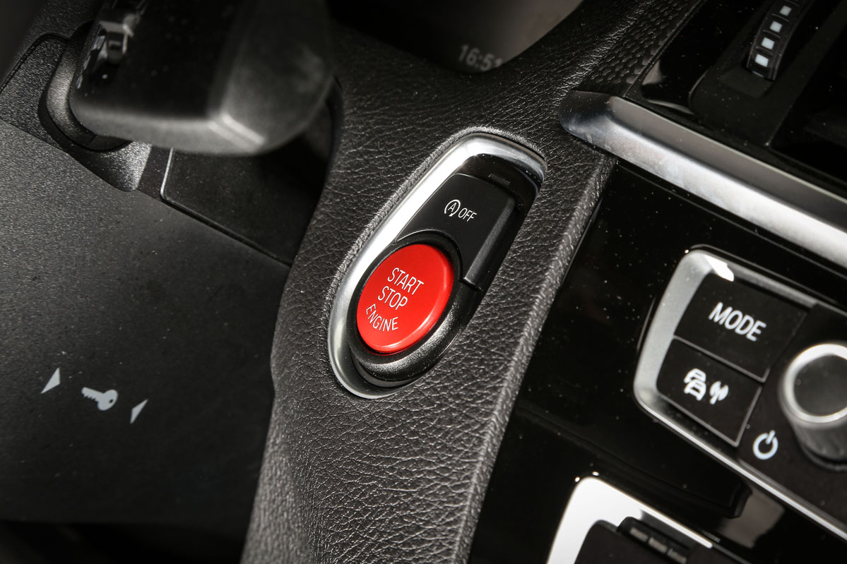 No podían obviar las molduras en fibra de carbono, eso sí, soltando antes 588 euros. Suma el botón de encendido en color rojo y los dos que configuran el motor y la dirección a mi gusto, y ahí finalizan las modificaciones. Porque los botones M1 y M2 en los que podemos guardar la configuración que queramos sí son nuevos, pero el volante en el que están montados no. Por cierto, un aro que diría que tiene el diámetro y el grosor perfecto, no como el del M3, que creo que en el último aspecto se pasa de ancho. ¿O será que tengo las manos pequeñas?