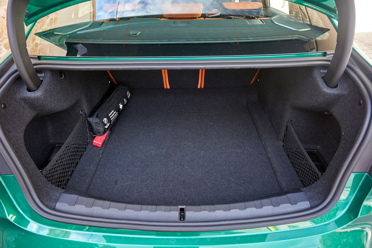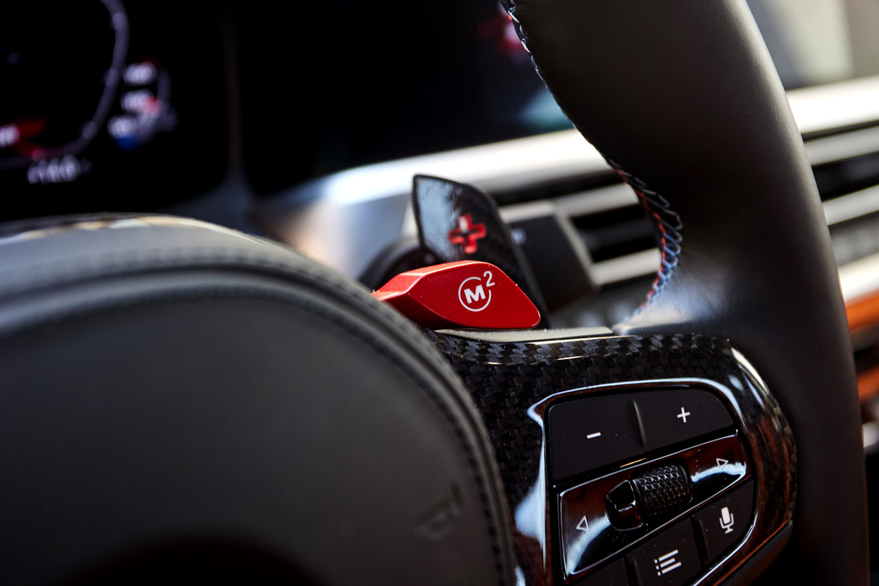 El resto del interior es BMW: muy buenos ajustes, materiales de primera y todo orientado al conductor. Claro que con esos asientos, el volante con costuras con los colores M, los botones rojos M1 y M2, los apliques en fibra de carbono y las enormes levas del mismo noble elemento con recubriendo en goma roja en su parte posterior pueden llegar a pasar desapercibidos. No, es imposible que lo hagan.
