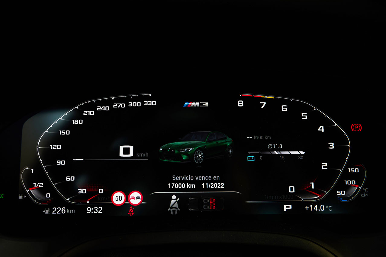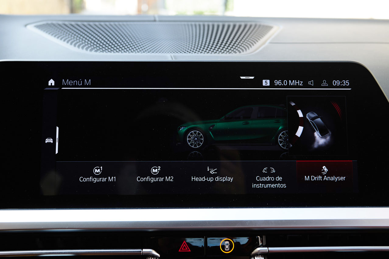 Y como BMW ha querido bajar kilos en la báscula, el techo en fibra de carbono viene de serie. Porque el peso es el hándicap de este BMW M3 Competition de la prueba. Son 1.805 kg los que declara, 210 más que la generación anterior. Pero este problema lo solventa con potencia, mucha potencia. Y es que este es un misil tierra-tierra que es capaz de acelerar de 0 a 100 km/h en solo 3,9", una décima más rápida que el M3 F80 con el Paquete de Competición y dos que el M3 'de acceso', ambos con el cambio DKG de doble embrague. Y no solo lo confirma un papel, también el afortunado conductor cuando en vivo y en directo le pide 'rock & roll' y él te regala 'hard rock'.