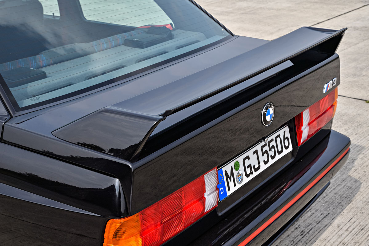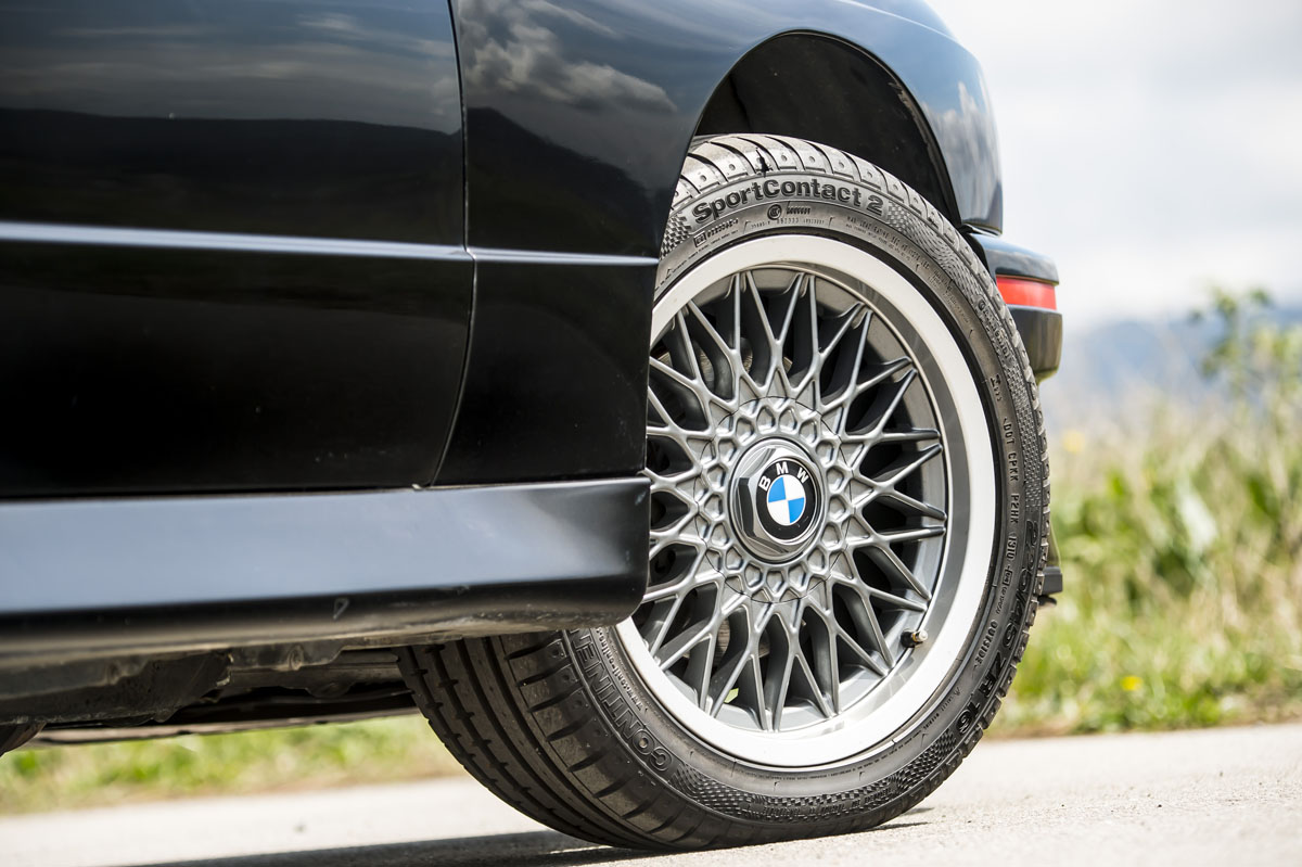 foto del alerón y la llanta del BMW M3 E30 Sport Evolution
