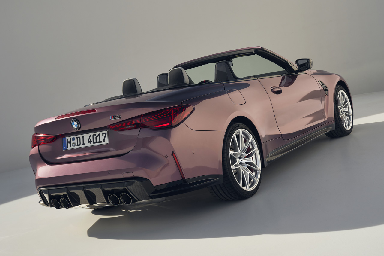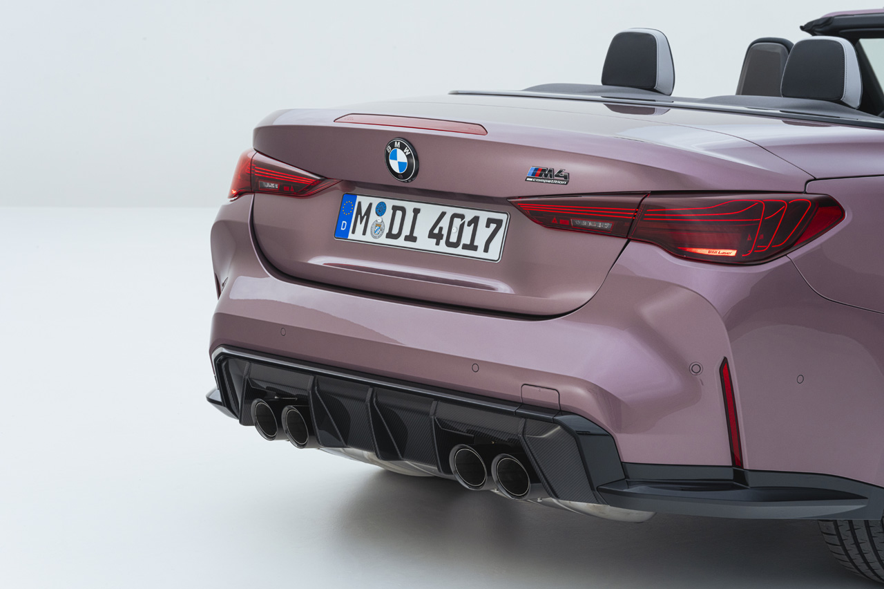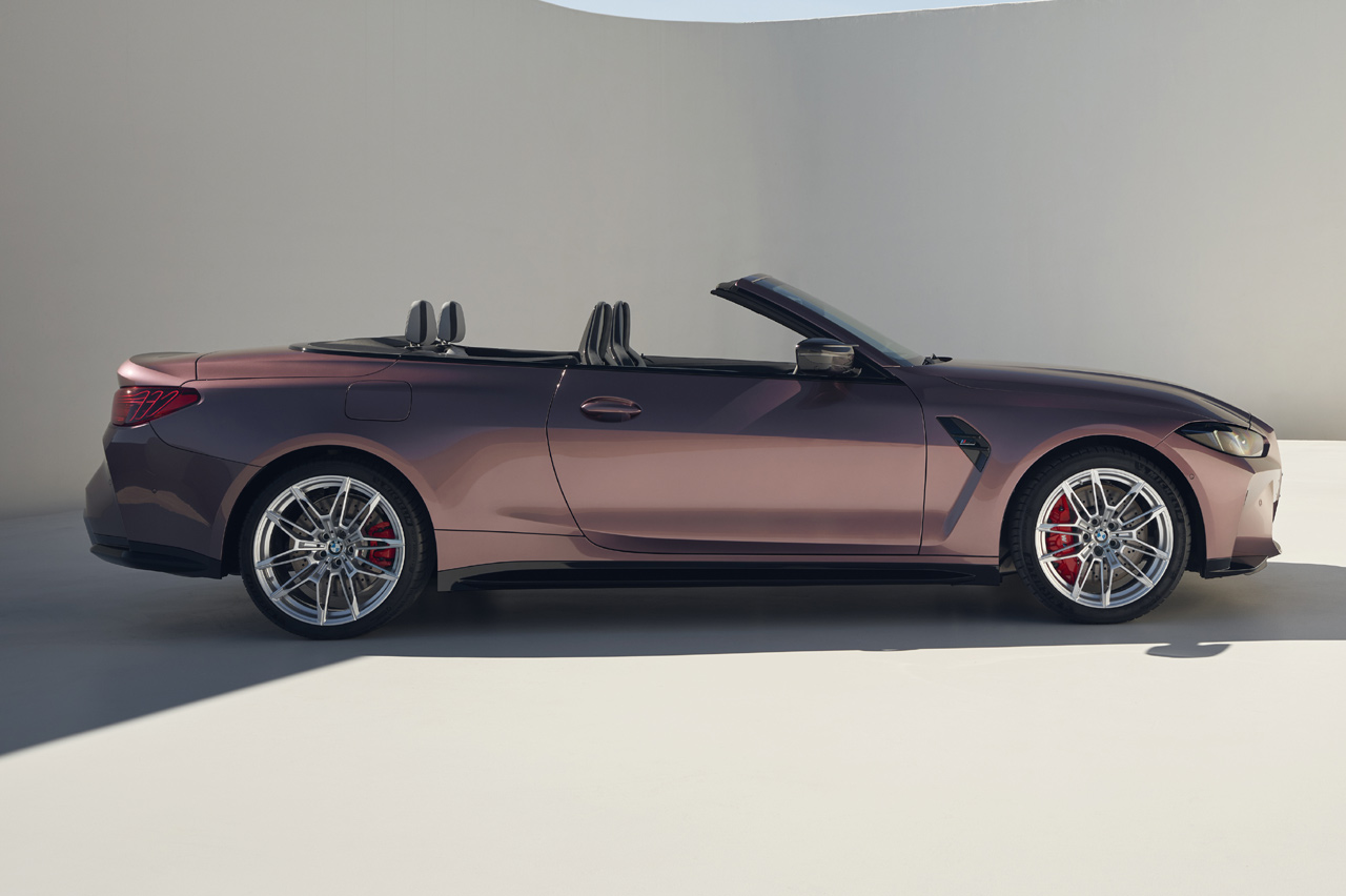 Es una combinación que posiblemente no elegiría para mi M4 Cabrio soñado, pero que sin lugar a dudas le sienta estupendamente. Lo digo por el llamativo color Velvet Orchid II Metallic, una tonalidad que forma parte de la impresionante (e interminable) paleta de BMW Individual y que convierte a este M4 en el centro de atención allí por donde va.