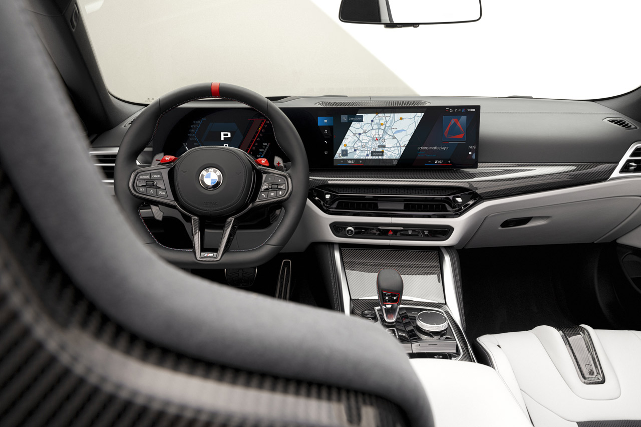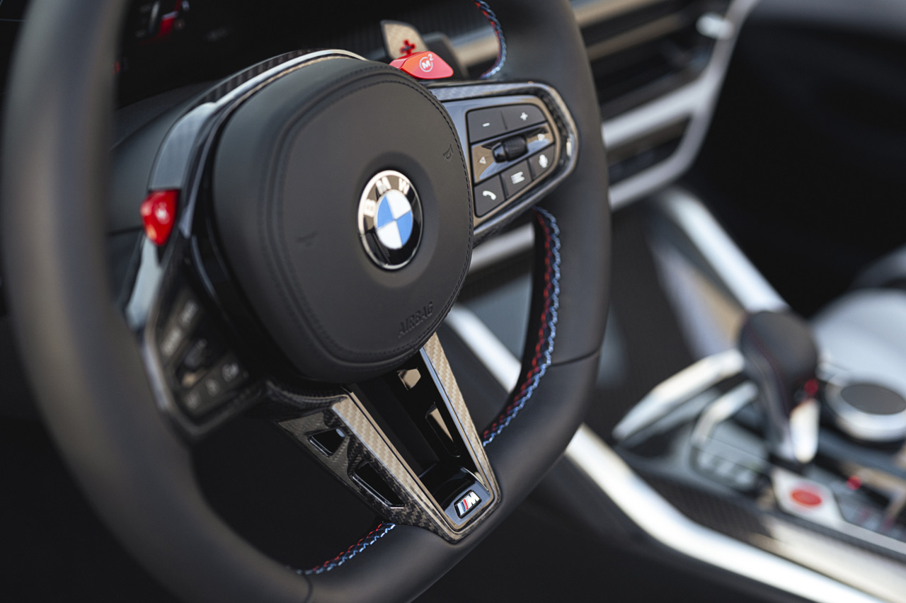 En el habitáculo hay un nuevo volante multifunción que además de estar achatado en su sección inferior, cuenta con botones específicos M y unas levas de cambio de gran tamaño. La compañía alemana ha aprovechado la ocasión para introducir nuevos materiales y acabados así como para actualizar el sistema multimedia. Porque la gran pantalla curva (formada por dos displays independientes de 14,9 y 12,3 pulgadas) cuenta ahora con la última evolución del sistema operativo de la marca, el BMW ID8.5.