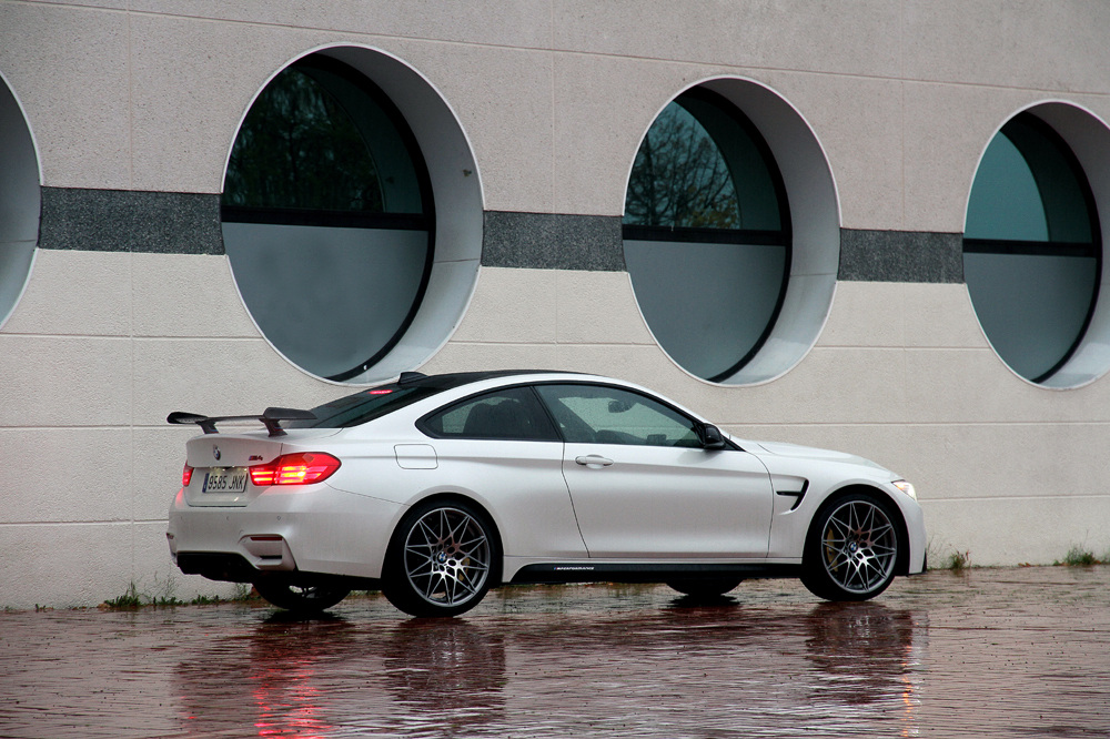 Como resultado, el BMW M4 CS Edition se distancia de sus hermanos más comunes gracias a una capacidad de tracción superior y a un comportamiento dinámico todavía más ágil y fino. El tren delantero parece que está pegado al suelo con pegamento, no hay ni rastro de subviraje y cuando te pasas de la raya, solo tienes que dar un pequeño golpe de gas para que la zaga salga a tu rescate redondeando el giro. Me gusta mucho las múltiples regulaciones que ofrece, pues puedes alterar las reacciones de la dirección, del motor, de la caja de cambios y de los amortiguadores incluso por separado. Y una vez que encuentres la combinación que más te guste, siempre puedes memorizarla para poder activar todos los reglajes con tan solo presionar un botón (tiene dos memorias).