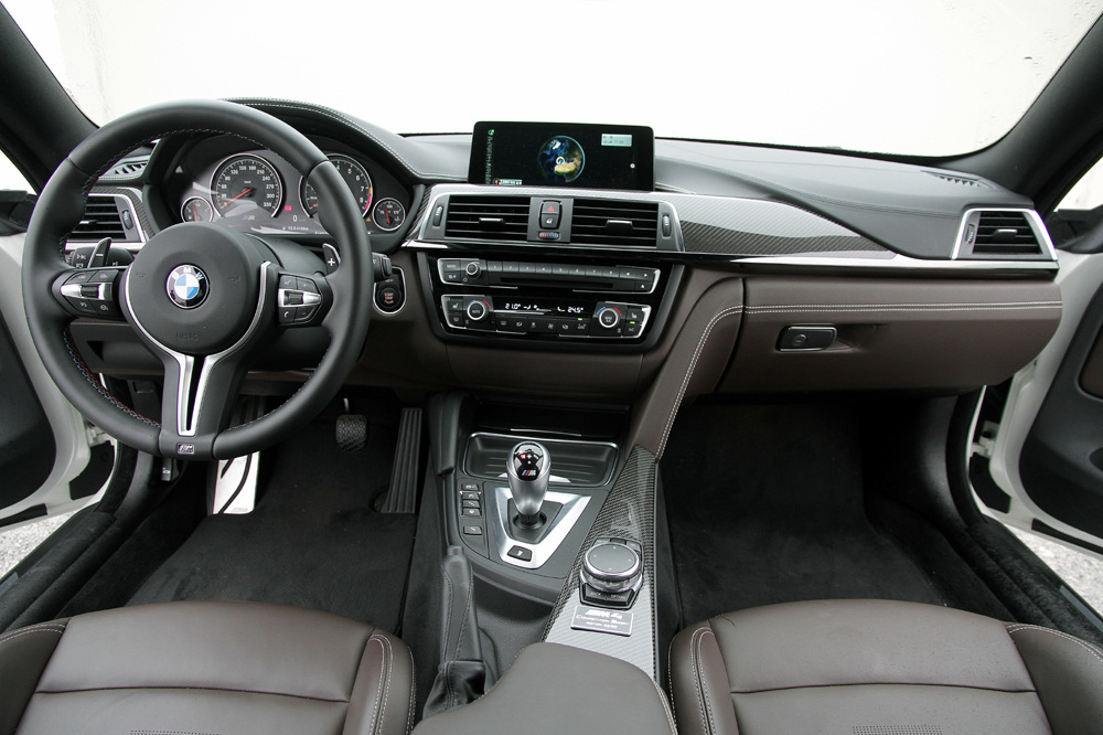 Antes de poner en marcha este bloque 3.0 M TwinPower Turbo y ver cómo se comporta en mi carretera favorita, veamos qué elementos diferenciadores incorpora en su habitáculo. Hay detalles que puede que no se vean a simple vista pero que enriquecen el conjunto, como los cinturones de seguridad, que incorporan una pequeña tira con los colores de guerra de BMW M. Los asientos también cambian: ahora presentan unas aberturas en la parte central del respaldo y según la marca, ofrecen mayor sujeción. Las molduras decorativas de fibra de carbono, la cuidada tapicería de cuero de alta calidad o la placa identificativa con su correspondiente numeración son otros de los cambios que incorpora.
