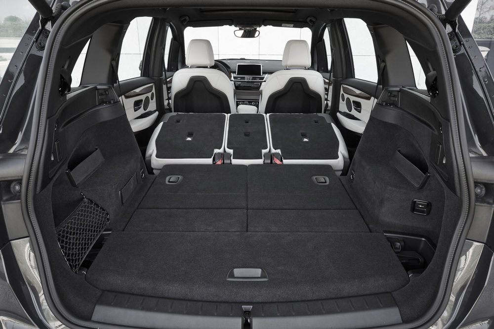 Y cuando digo mucho, no exagero en absoluto. Para que te hagas una idea, el maletero del BMW Serie 2 Gran Tourer alcanza un volumen con dos filas de asientos de 645 litros, pero como esa segunda fila se puede regular longitudinalmente en 13 cm, con cinco plazas utilizables puede llegar a los 805 litros. Es decir, nada menos que 305 litros más que un BMW Serie 3 (prueba) con carrocería Touring, por poner un ejemplo, que además exteriormente es 6 centímetros más largo. Y si plegamos la fila trasera, la cifra alcanza los 1.905 litros, superando incluso al que hasta ahora era el modelo más versátil del fabricante alemán, el BMW X5 (que ofrece 1.870 litros con los asientos abatidos).