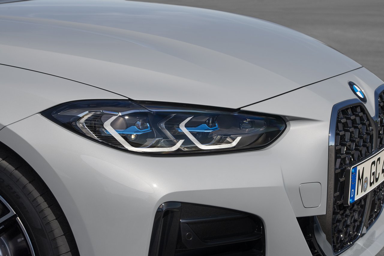 Junto a la gran parrilla hay unos grupos ópticos más delgados y con un aspecto más moderno. Estos cuentan de serie con tecnología de ledes para todas sus funciones, aunque opcionalmente también es posible equipar otros con tecnología láser. Lo que no varía prácticamente son las clásicas y deportivas proporciones exteriores, con un capó largo, unos cortos voladizos y una atlética silueta de coupé. Uno de los detalles específicos del Gran Coupé con respecto al Coupé o el Cabrio son los tiradores de las puertas, que en este quedan enrasados.