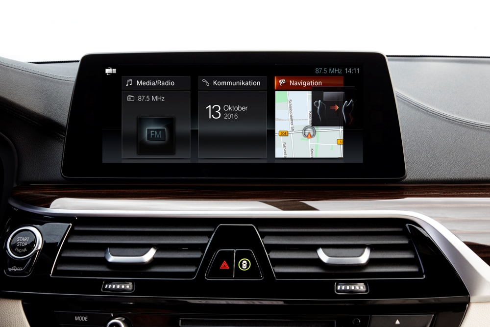 Entrando en detalle en el apartado tecnológico del Serie 5 2017 encontramos que el nuevo sistema de infoentretenimiento estrena una pantalla de 10,25 pulgadas con un interfaz renovado y control gestual como el que incluye el Serie 7. A esto se suma el head-up display renovado y la famosa llave Display Key que permite controlar y verificar diferentes parámetros del coche, como la autonomía, activar o desactivar la climatización y las luces o abrir y cerrar las puertas. Además, mediante esta llave se puede gestionar el sistema de aparcamiento por control remoto que pudimos presenciar en primera persona en los BMW Innovation Days 2017.