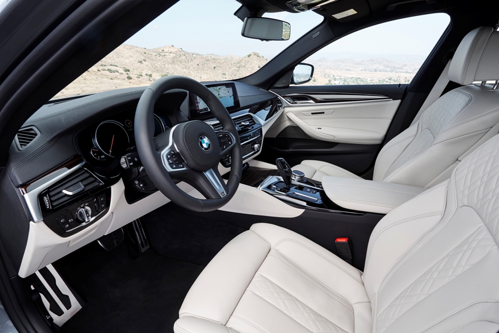El Serie 5 2017 crece con respecto a su predecesor, con 36 mm adicionales de longitud, 6 mm más de anchura y 2 mm más de altura, así como una distancia entre ejes que crece 7 mm y un maletero que aumenta 10 litros su capacidad hasta los 530 litros. Por ello, ofrece un habitáculo más grande, a lo que además ha contribuido el rediseñado salpicadero ofreciendo una sensación de amplitud adicional. La pantalla del sistema de infoentretenimiento de 10,25 pulgadas, el cuadro de instrumentos totalmente digital, la consola central simplificada, el punto de carga inalámbrica bajo ésta y la reducción del volumen del salpicadero permiten ofrecer más espacio para los ocupantes, los cuales irán rodeados de materiales de mayor calidad, algo percibido nada más subirnos al nuevo BMW Serie 5, junto a los asientos de nueva talla con regulaciones eléctricas, calefactados y ventilados.