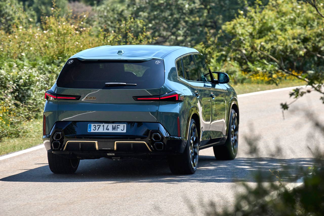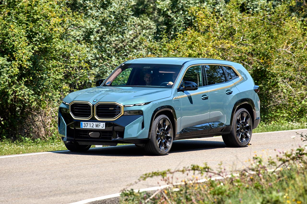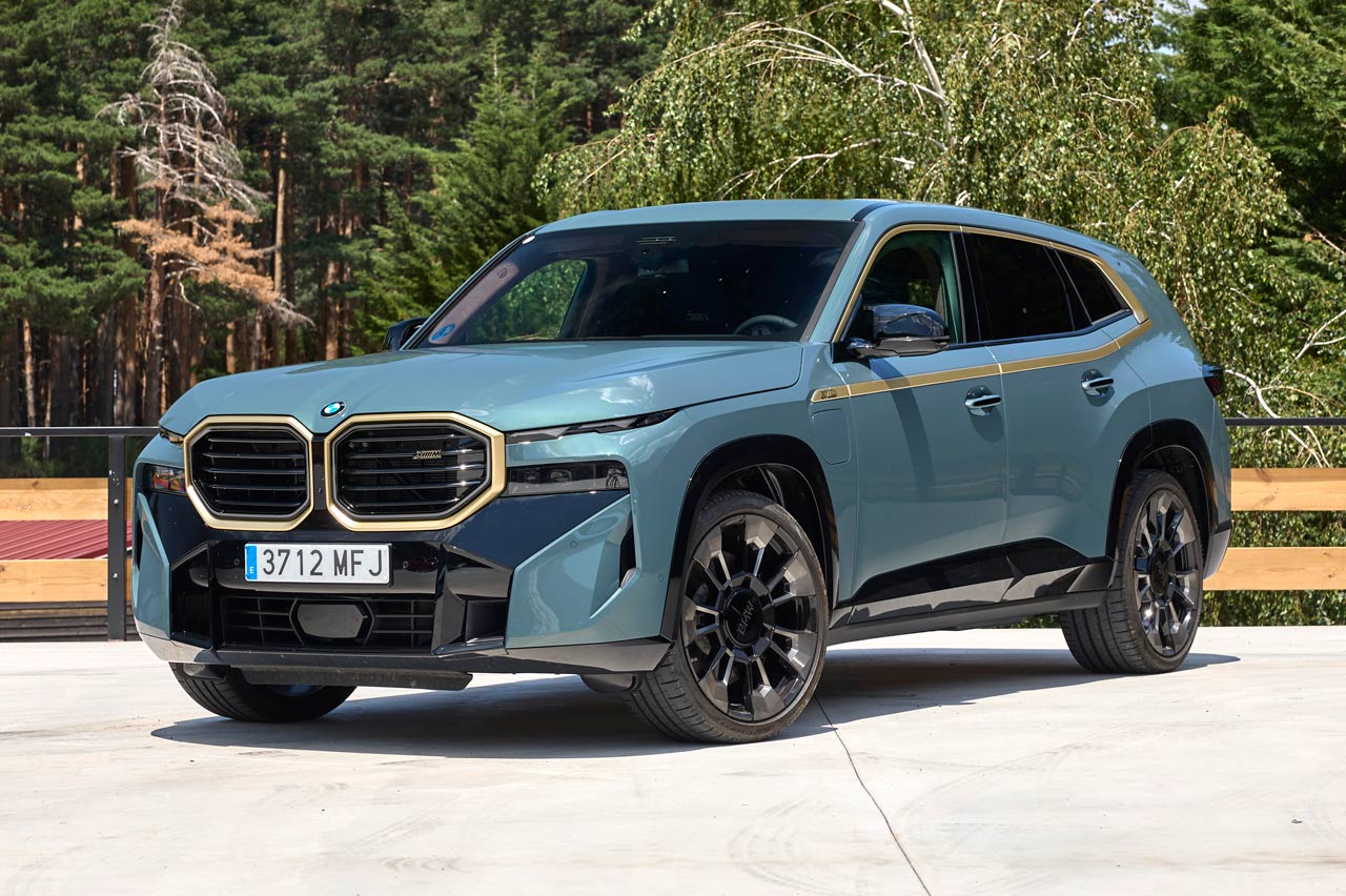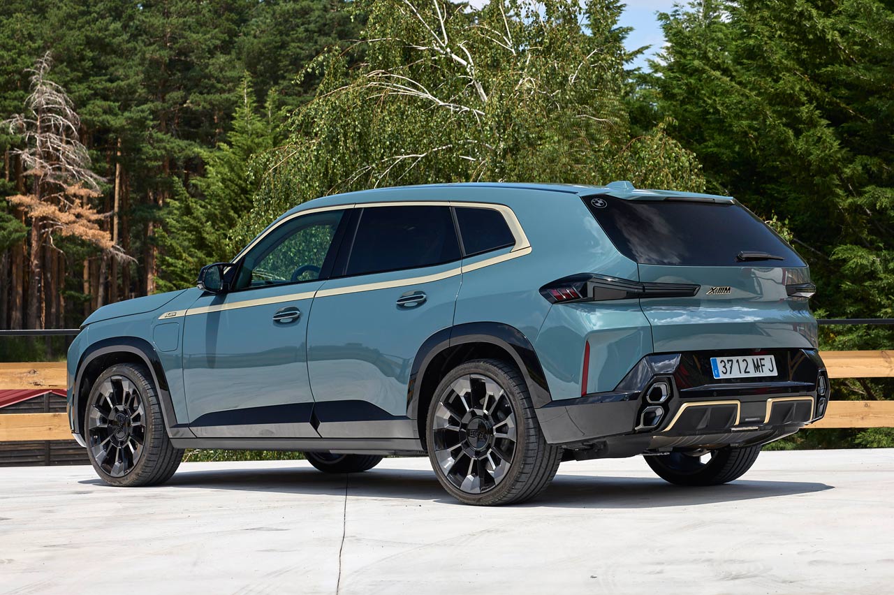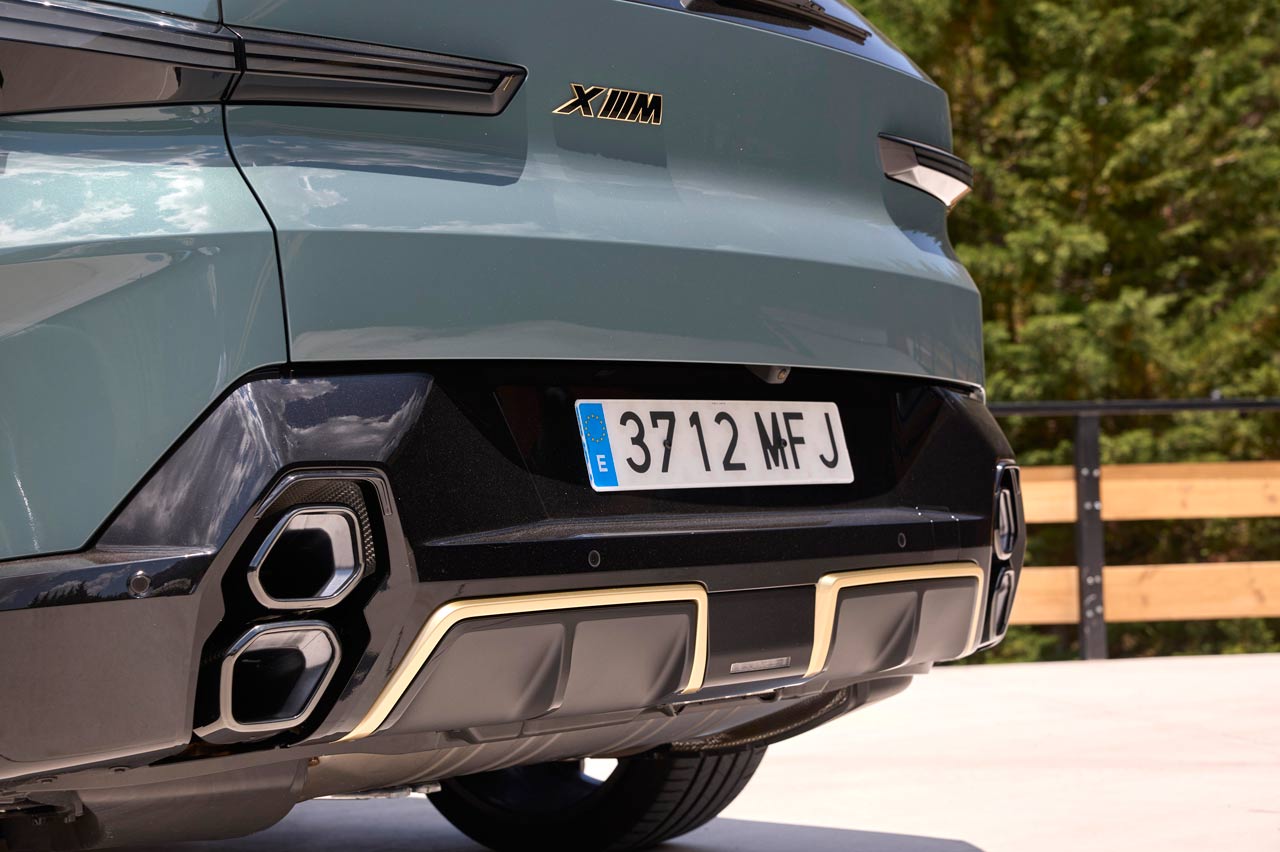 También su diseño. Es diferente a lo visto hasta ahora, aunque sus faros están divididos en dos secciones, como los nuevos BMW Serie 7 y X7, aunque a diferencia de estos, en el XM me gusta el resultado. También esos amplios riñones -negaré haberlo escrito-, que en su caso tienen un borde iluminado -de serie- y un perfil dorado -depende del acabado y la versión- que viste y le sienta la mar de bien, y más con el color 'Cape York verde metalizado' de la unidad de pruebas. También en la línea de cintura y la curva Hofmeister, las llantas (estilo 923 M con un precio de 3.370 euros) y el difusor posterior, que es escoltado por dos salidas a cada lado en posición vertical y con formas hexagonales. Otra novedad.