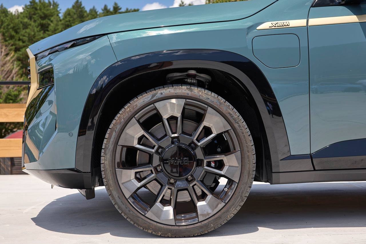 Lo primero que llama la atención es su planta y sus generosísimas cotas. Tiene una longitud de 5,11 metros, una anchura de 2,01 m y una altura de 1,76 m. Por eso, las llantas de hasta 23", el tamaño más grande en BMW, no parecen tan enormes. Por cierto, en el cubrebuje, las letras BMW pueden sustituir al logo.