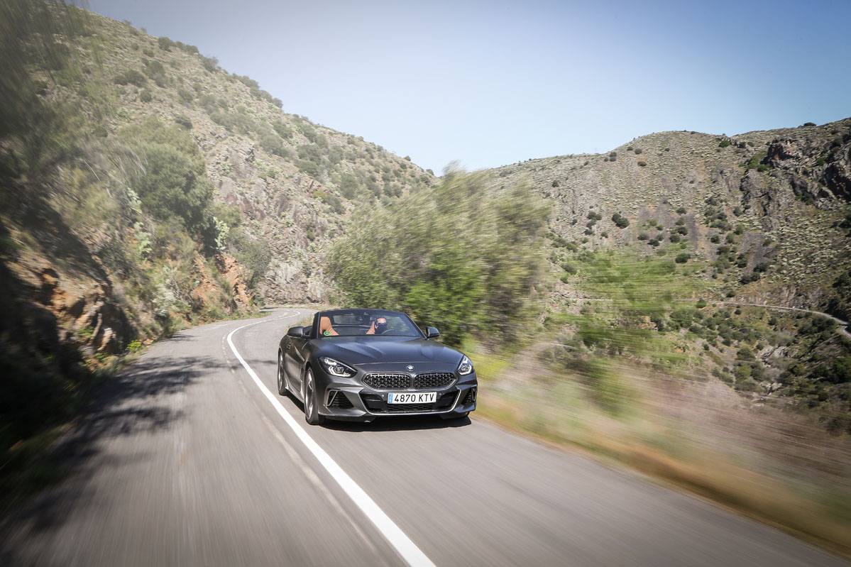 El coche de la prueba, el BMW Z4 M40i, es uno de esos automóviles creados para hacerte disfrutar de cualquier desplazamiento. Porque si te gustan los descapotables, con este podrás conducir a cielo abierto mientras disfrutas de la melodía y el empuje de un poderoso motor de seis cilindros en línea y de un chasis rígido con una puesta a punto ágil. Todo esto lo combina además con un diseño exterior de lo más sugerente y una calidad general en el habitáculo de primer nivel.