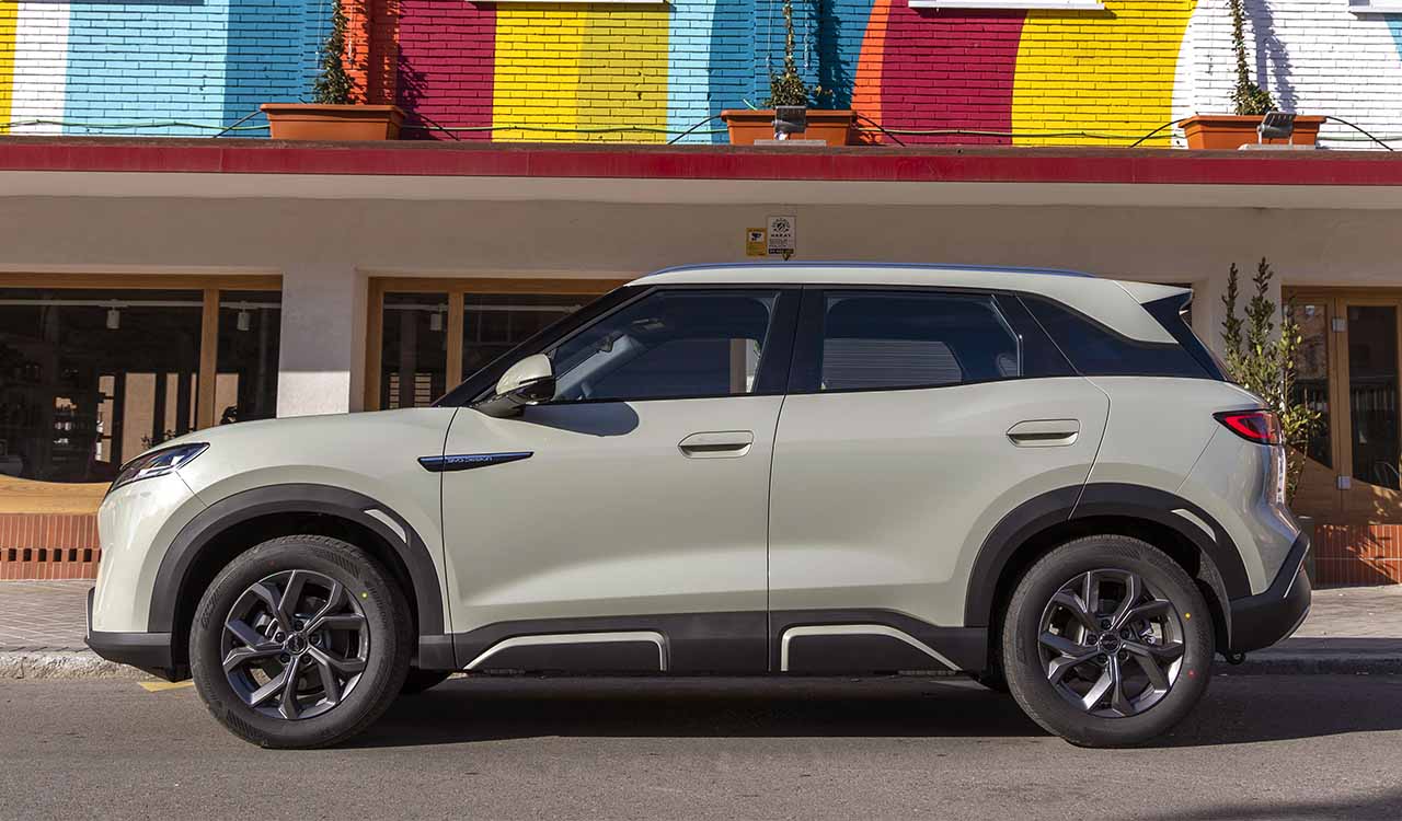 Cuenta con una parrilla completamente cerrada y unas formas limpias en toda su carrocería. Prueba de ello son los tiradores de las puertas, que están enrasados en la carrocería. En general, las líneas de tensión y nervios brillan por su ausencia en la carrocería. Y por medidas podríamos encuadrarlo dentro del segmento B SUV, pero por la parte alta. Tiene una longitud de 4,31 m, una anchura de 1,83 y una altura de 1,68.