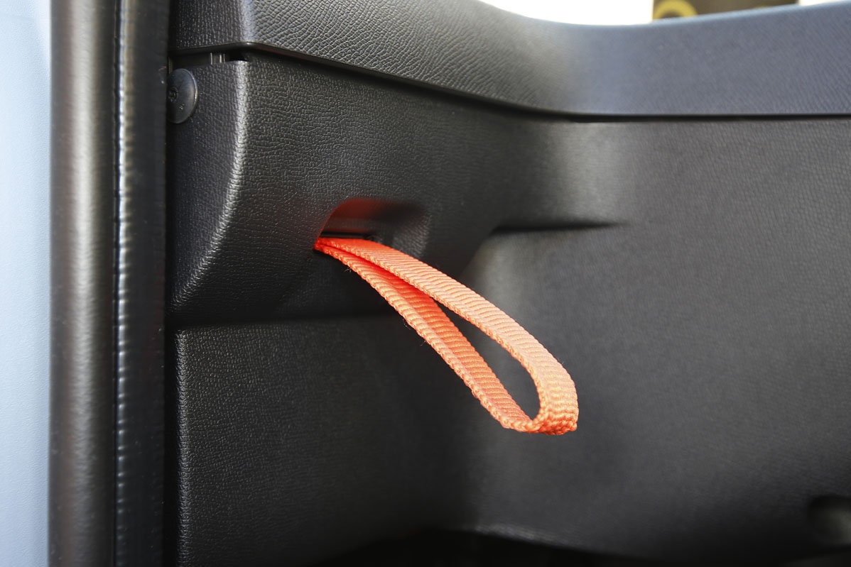Sentado, en el primer vistazo, veo que se ha mantenido la misma filosofía. No tiene tiradores, sino cintas; y carece de espejo retrovisor, lo que no supone un gran problema hasta que la sirena de una ambulancia que no localizo hace girar mi cuerpo como si de Patrick Swayze se tratase. Asimismo, las ventanillas son de pinza y basculan hacia arriba, como las del 2CV -recuerda la filosofía del ahorro de costes, pequeño saltamontes-, con una acción sencilla para abrirlas, pero más complicada e imposible hacer en marcha para cerrarla -necesitas las dos manos-.