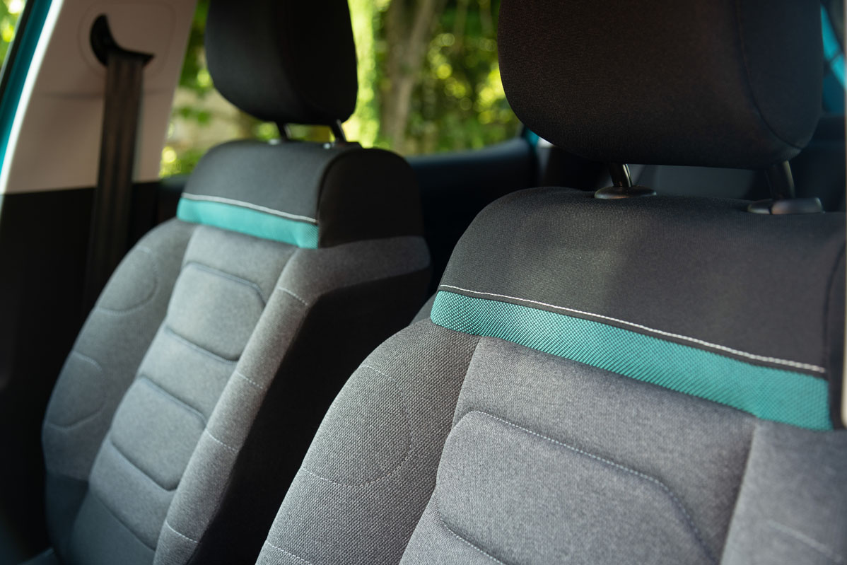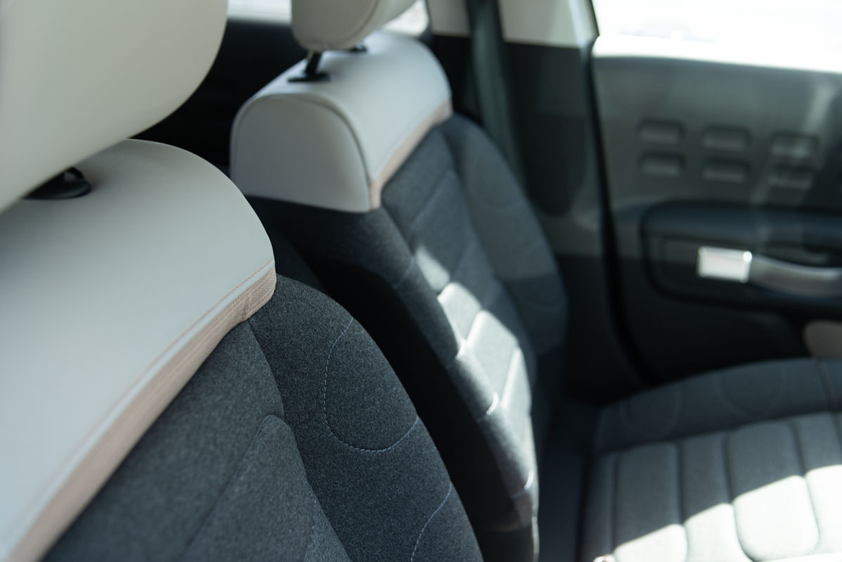 No puedo terminar la prueba del coche sin probar los asientos traseros. Con tan solo plantar la palma de la mano ya se nota la magia de Citroën. Pero es que, además, el patrón de la tapicería, como en los asientos delanteros, mola. Aprovecho para acomodar mis posaderas y ver la distancia que me separa del asiento delantero y del techo: tres y cuatro dedos, respectivamente.
