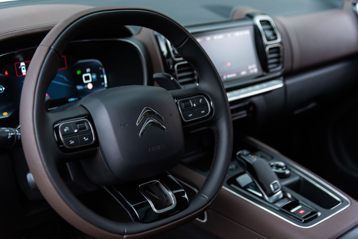 No podía faltar bajo el capó un enérgico motor capaz de mover su tonelada y media más los cinco pasajeros y su respectivo equipaje. En el caso de la unidad de pruebas, el Citroën C5 Aircross equipa el gasolina 1.6 de 181 CV. Tiene energía más que suficiente, por lo que los adelantamientos o las subidas de pendientes muy pronunciadas las realiza con suma facilidad. Eso sí, siempre que no lleves seleccionado el modo ECO, porque el ímpetu del propulsor mengua. Trabaja asociado a un cambio automático -no existe opción manual en el de 180 CV, sí en el de 130- de convertidor de par de ocho relaciones bastante rápido. Poca tacha se le puede poner, salvo los tirones que ofrece al iniciar la marcha cuando el bloque está frío. Por lo demás, chapó.