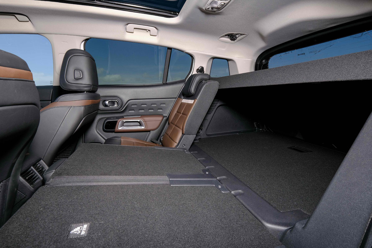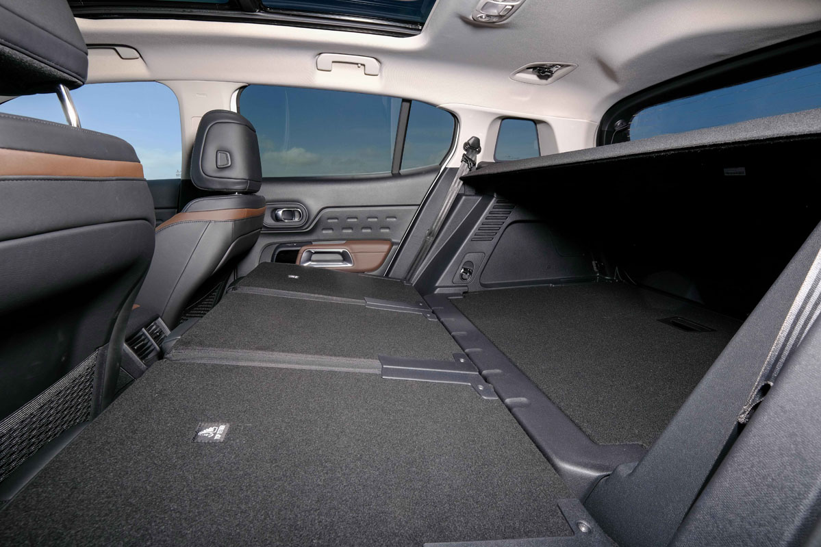 Y como buen rutero no podía faltar un espacio de carga a la altura. Bueno, a la altura y a la profundidad, porque se pueden meter elementos de hasta 1,90 m longitud. Su capacidad de carga es de unos destacados 580 litros que se amplían fácilmente hasta los 720 litros (el más grande del segmento) con la segunda fila corrida. Sí, porque los asientos de la segunda fila del C5 se pueden deslizar de forma independiente, son reclinables y escamoteables para transportar hasta 1.630 litros con un piso totalmente plano. Durante las vacaciones de verano he podido comprobar cómo su maletero se traga maletas, maletas y más maletas… Si no me crees, pregúntale a mi suegra si te sobra valentía.