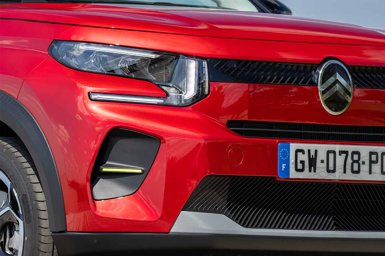 En términos de diseño no se diferencia en nada del (prueba) Citroën C3 2024, su hermano de combustión. Predomina la originalidad y el colorido, y añade un toque aventurero con las protecciones plásticas inferiores, dándole aspecto de crossover. Además, la firma luminosa LED es completamente nueva y hay posibilidad de elegir tonos llamativos en combinación con un techo bicolor.