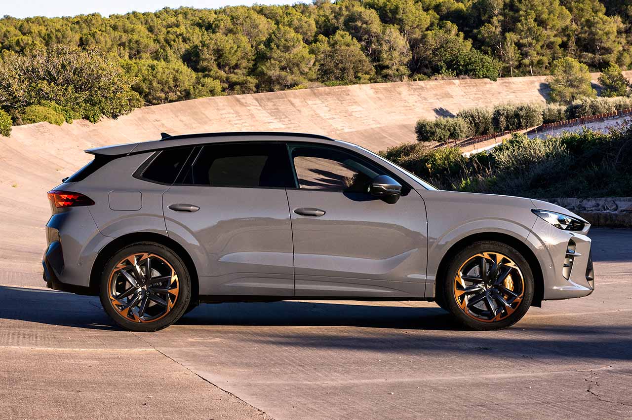 Las llantas son de entre 18 y 20 pulgadas, y se trata de un SUV C, con 4,52 metros de longitud, por 1,86 de anchura y 1,58 de altura. Los paragolpes tienen líneas de tensión muy marcadas, pero el resto de la carrocería tiene formas fluidas, pero a la vez agresivas. Me gustan los ya clásicos detalles en color cobre, así como el pequeño spoiler trasero sobre la luneta o los tiradores clásicos en las puertas.