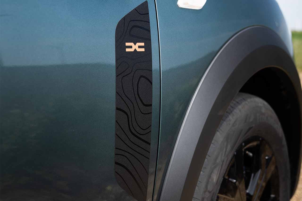 Esto también se traslada al interior, cosa que te cuento más abajo, al igual que unos motivos 'topográficos' con líneas isobaras que le dan cierto toque aventurero a los añadidos negros que hay tras los pasos de rueda delanteros. Llantas negras y barras de techo también acompañan en esta sensación de un Dacia que tiene ganas de descubrir mundo.
