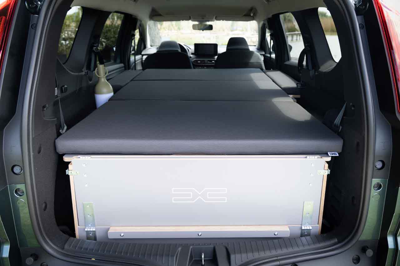 Una especie de cajón que se guarda en el maletero y que sirve tanto para las versiones de cinco como para las de siete plazas. Este se despliega y, con los asientos traseros abatidos, se convierte en una cama doble de 190 x 130 cm. Además, con ella en el maletero la capacidad del mismo sigue teniendo 220 litros, por lo que no implica que no puedas cargar con un par de maletas.