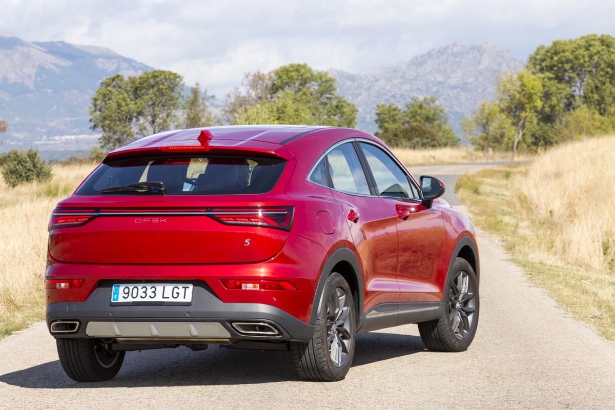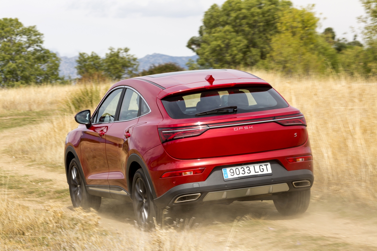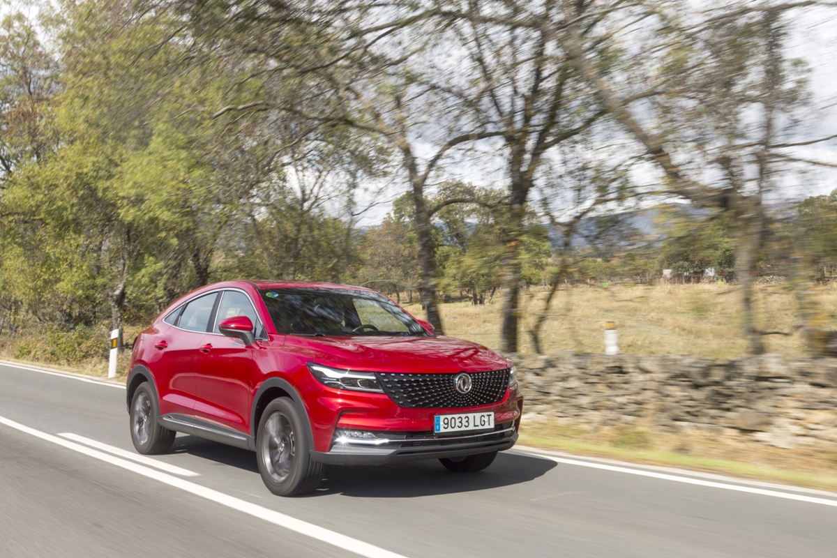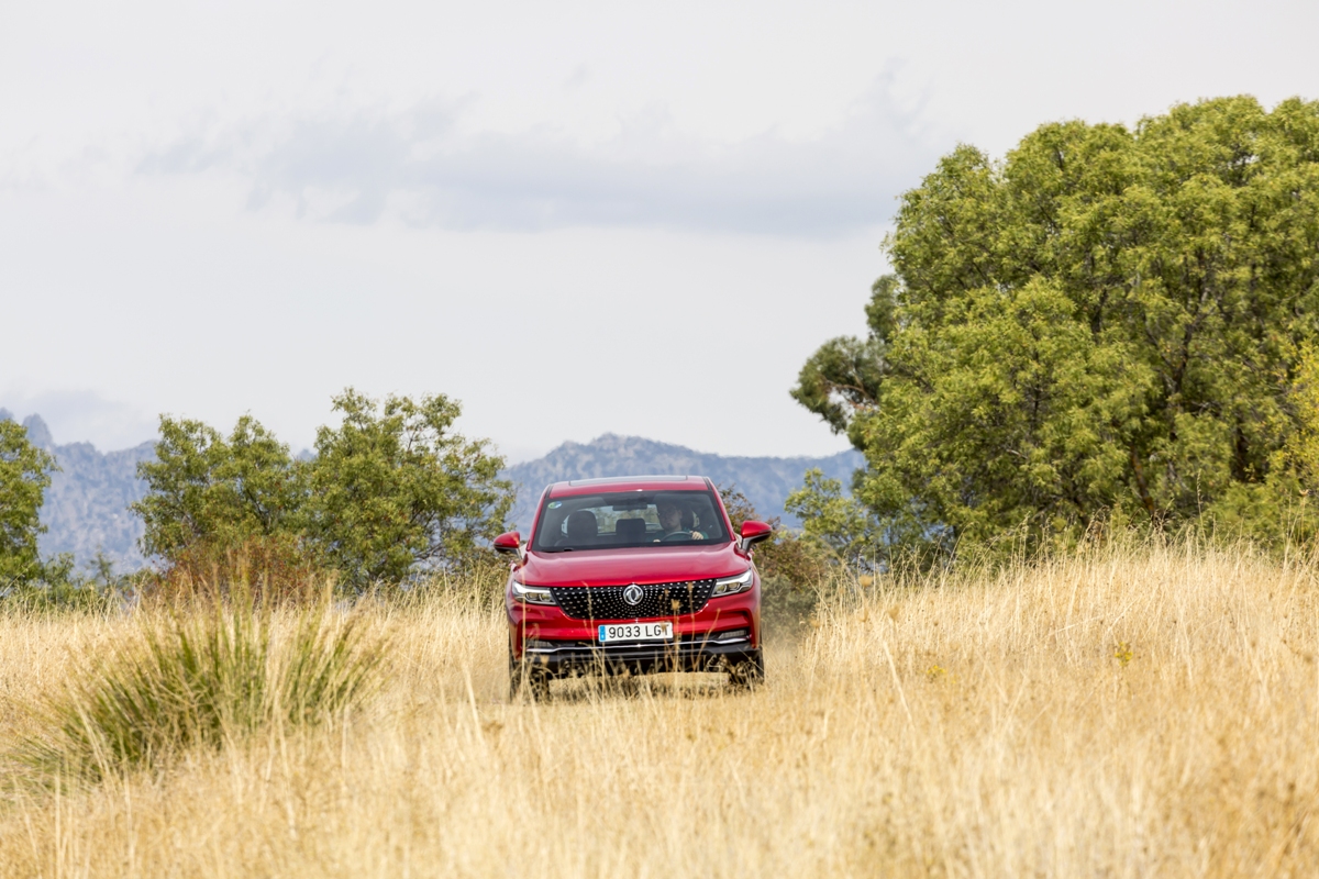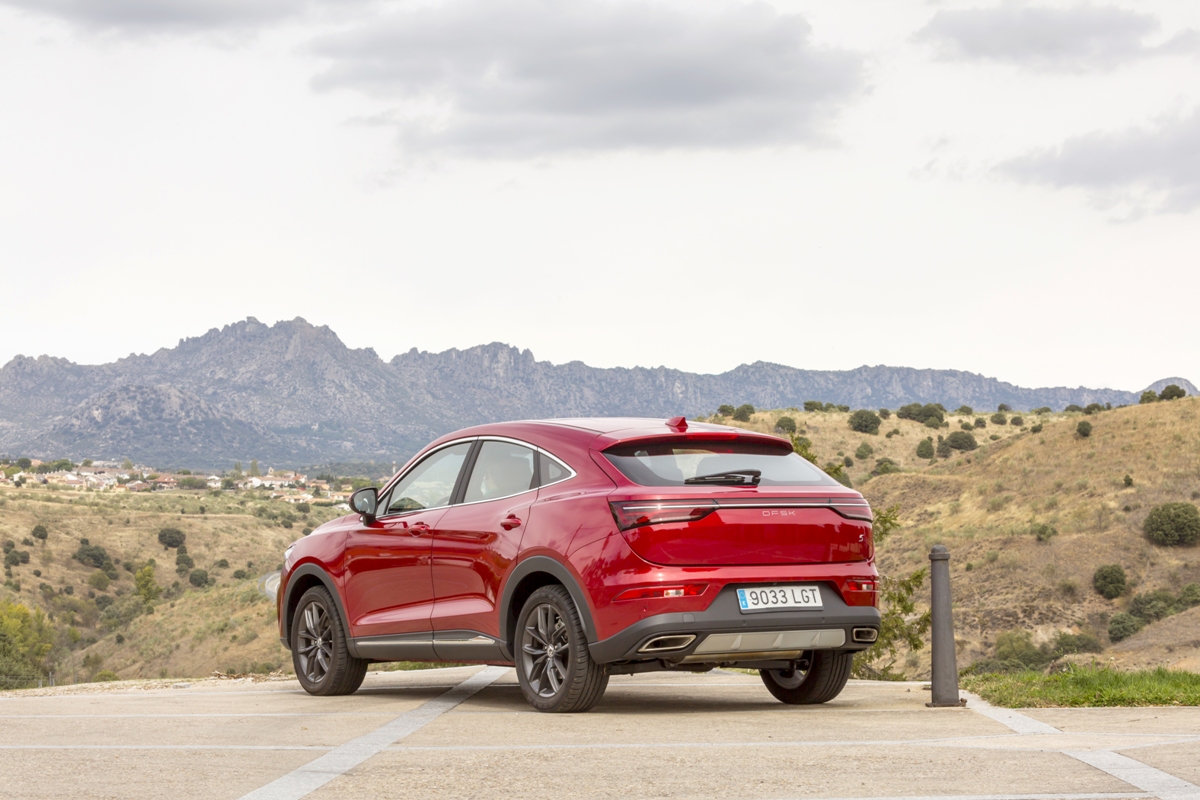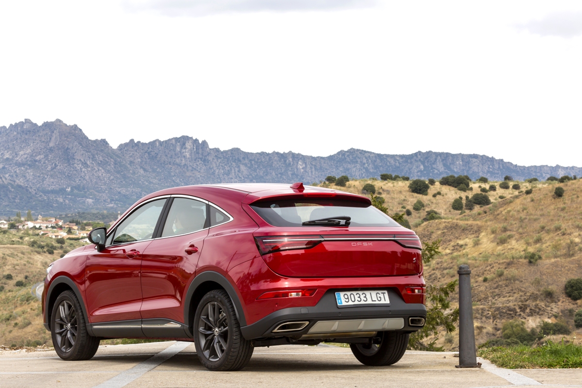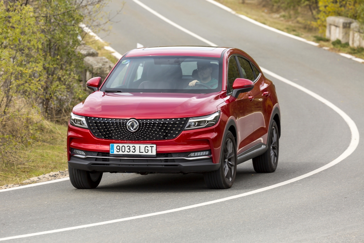 En materia de chasis, el tacto es correcto. La dirección, aunque poco informativa, ofrece un tacto agradable y mantiene bien la trayectoria. Nada que ver, sin ir más lejos, con las de algunos coreanos de hace una o dos generaciones, que eran malas y obligaban a hacer correcciones constantes en el volante. En este sentido, en DFSK apuntan en la buena dirección, como también lo han hecho con una puesta a punto de chasis que hace que el coche sea cómodo, aunque no especialmente ágil. Esto último no termina de casar con la imagen de deportividad que transmite el diseño exterior, pero tampoco supondrá ningún problema para quien busque un coche para hacer desplazamientos confortables, sin más. A los mandos, el conductor tiene sensaciones a mitad de camino entre un SUV y un todoterreno, especialmente a la hora de afrontar curvas, con un balanceo de carrocería más acusado de lo habitual. Desde luego, no es un coche pensado para correr, ni por la configuración de la suspensión ni por el conjunto motor/cambio. Esto conviene tenerlo en cuenta para no llevarse sorpresas.
