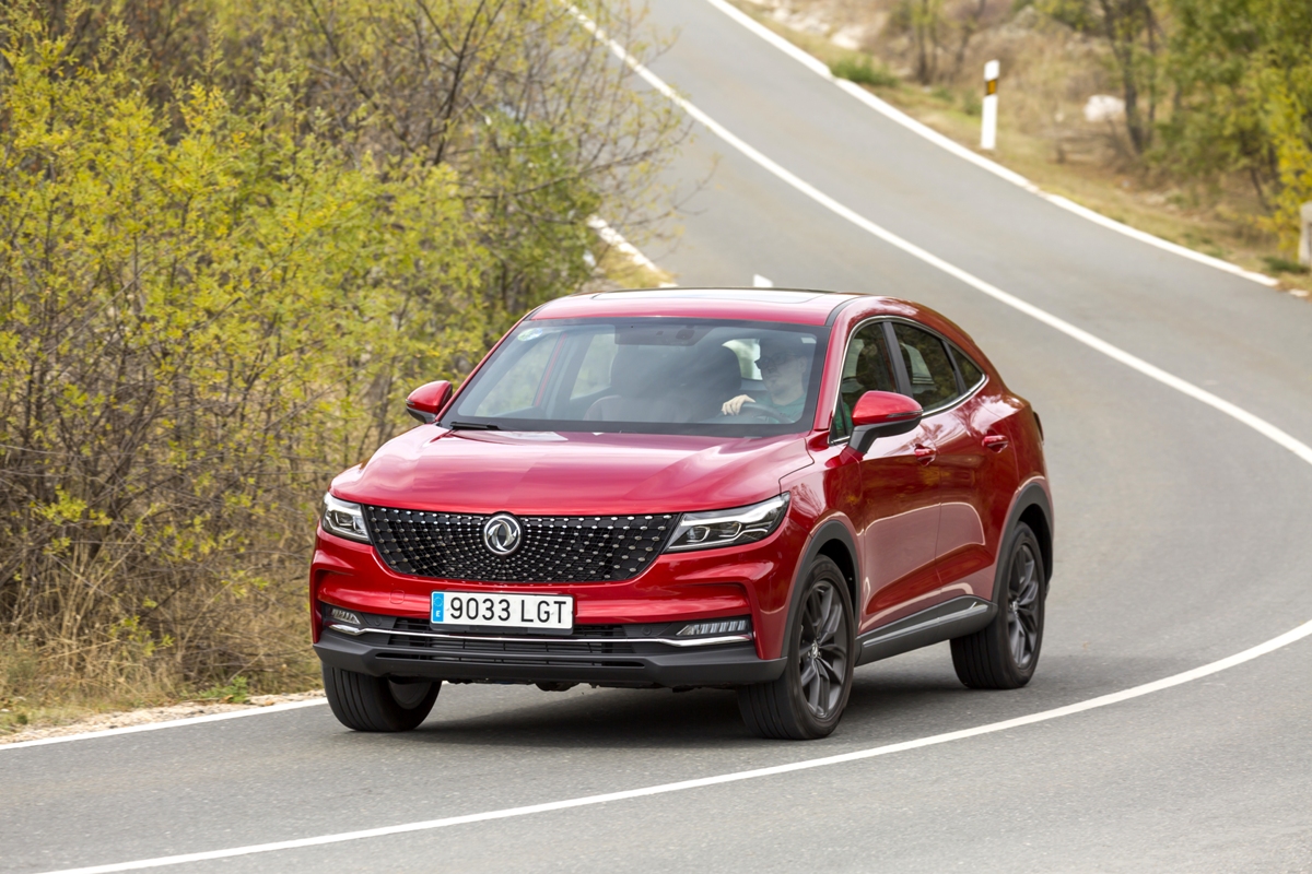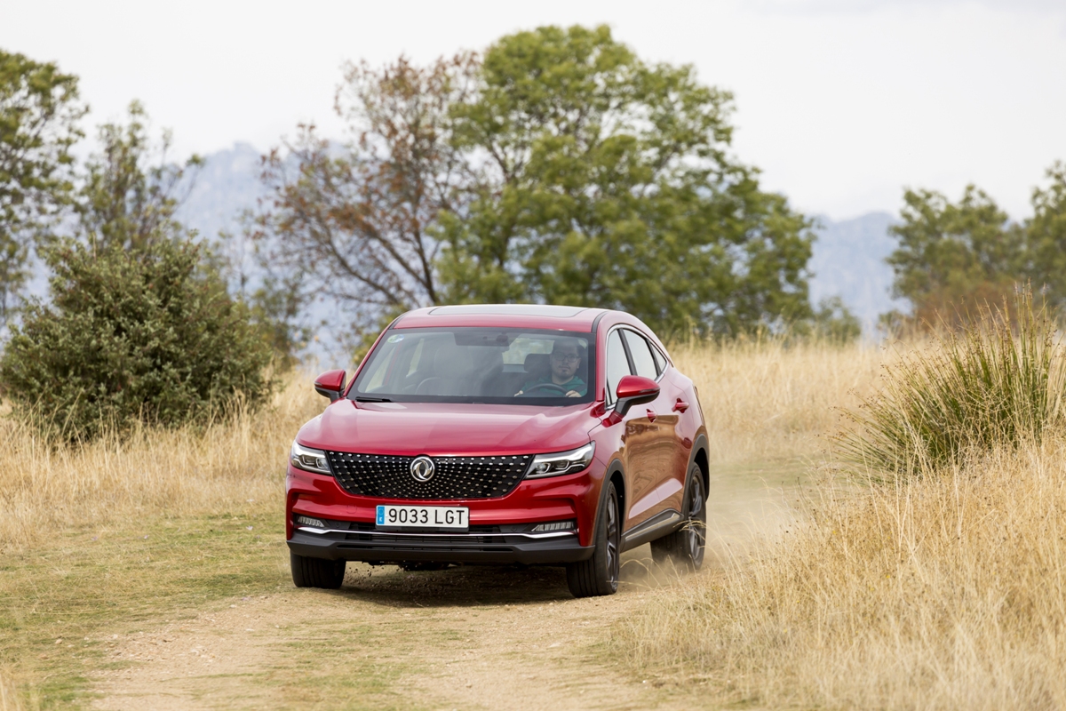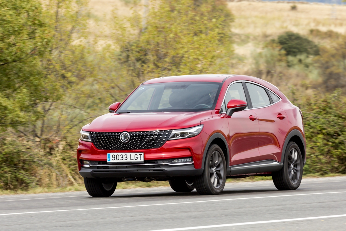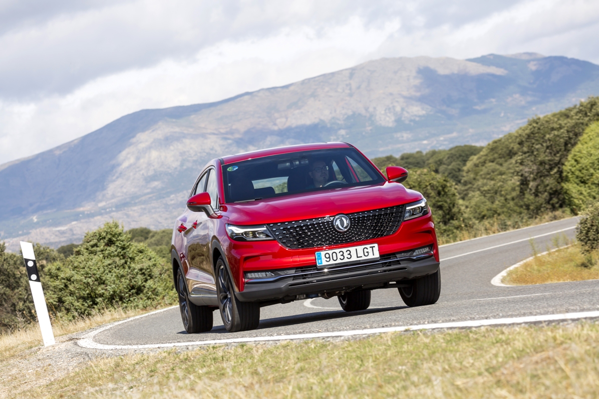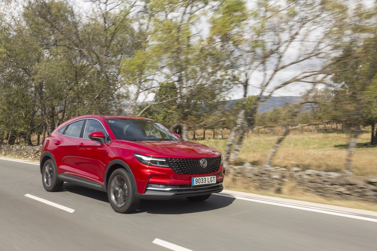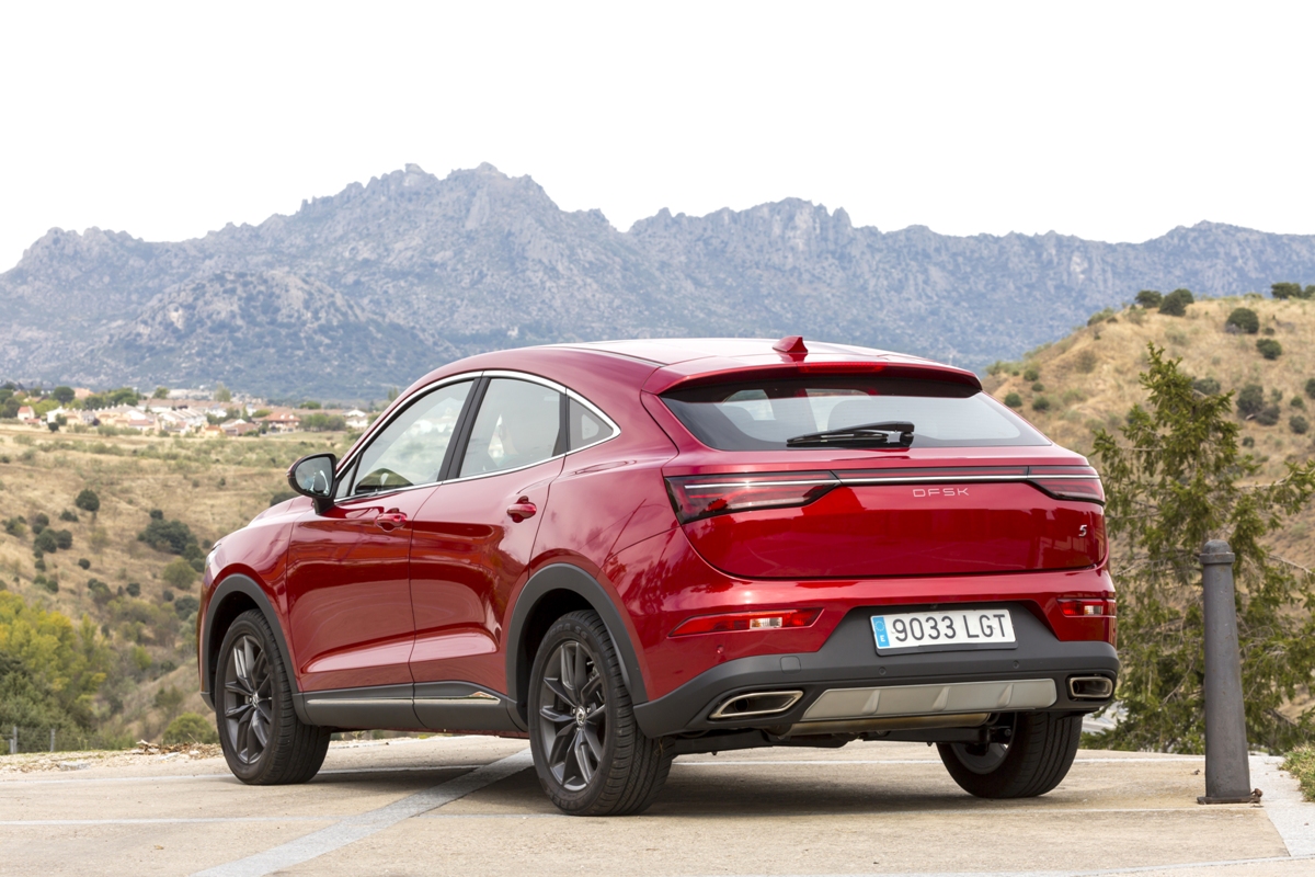 En materia de chasis, el tacto es correcto. La dirección, aunque poco informativa, ofrece un tacto agradable y mantiene bien la trayectoria. Nada que ver, sin ir más lejos, con las de algunos coreanos de hace una o dos generaciones, que eran malas y obligaban a hacer correcciones constantes en el volante. En este sentido, en DFSK apuntan en la buena dirección, como también lo han hecho con una puesta a punto de chasis que hace que el coche sea cómodo, aunque no especialmente ágil. Esto último no termina de casar con la imagen de deportividad que transmite el diseño exterior, pero tampoco supondrá ningún problema para quien busque un coche para hacer desplazamientos confortables, sin más. A los mandos, el conductor tiene sensaciones a mitad de camino entre un SUV y un todoterreno, especialmente a la hora de afrontar curvas, con un balanceo de carrocería más acusado de lo habitual. Desde luego, no es un coche pensado para correr, ni por la configuración de la suspensión ni por el conjunto motor/cambio. Esto conviene tenerlo en cuenta para no llevarse sorpresas.