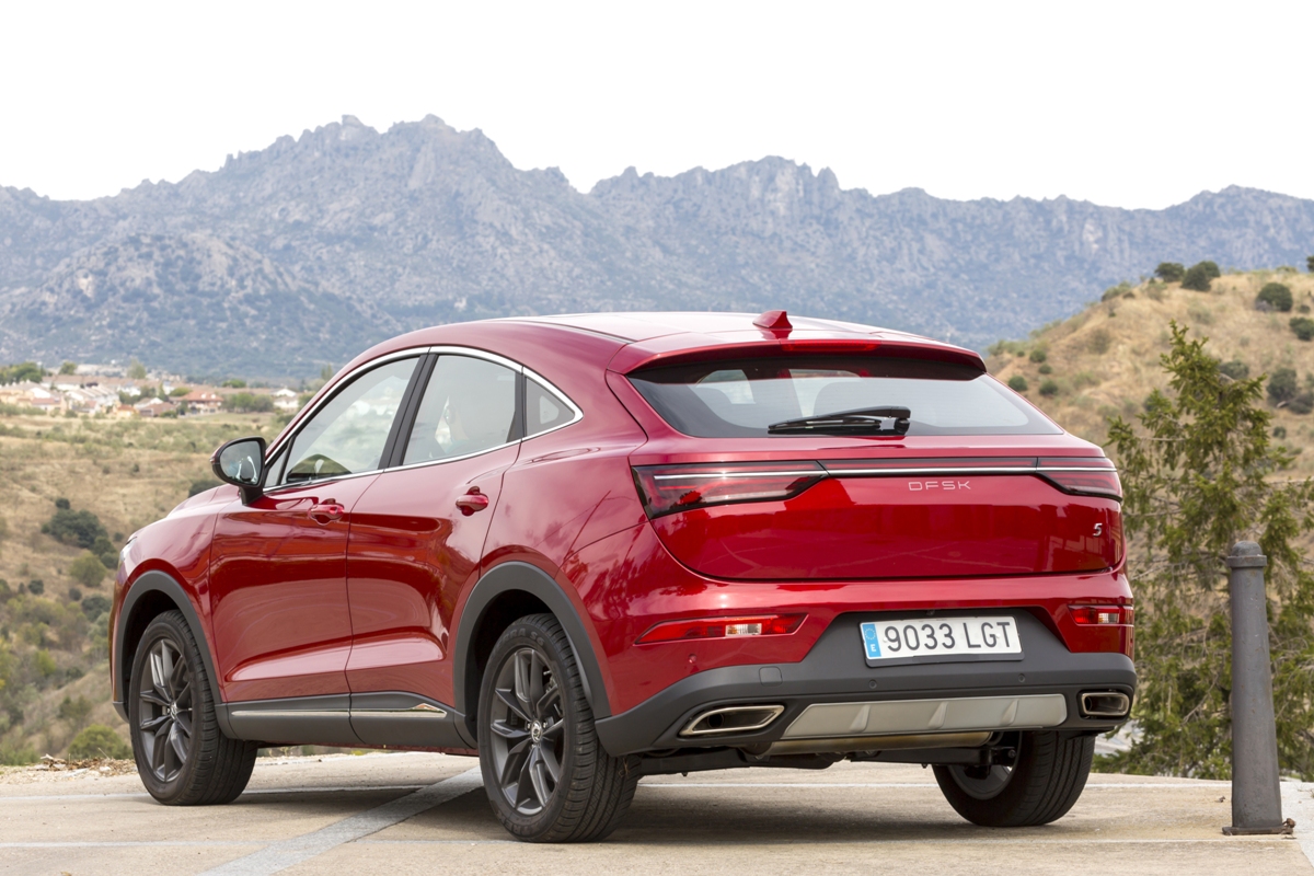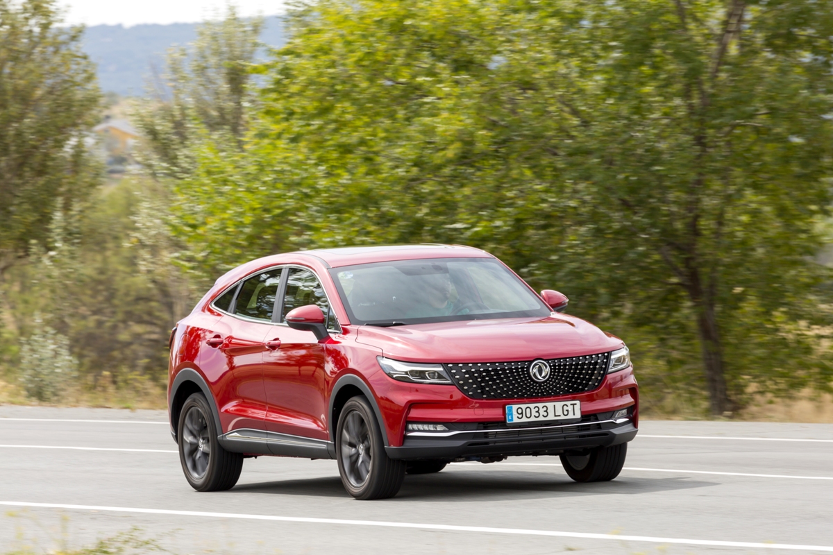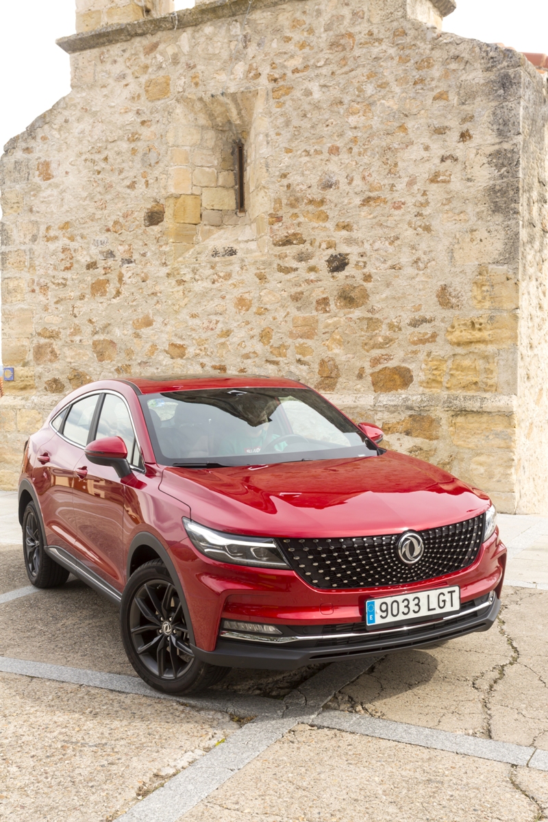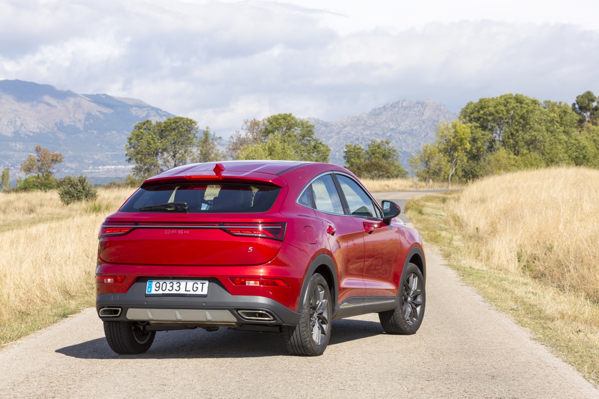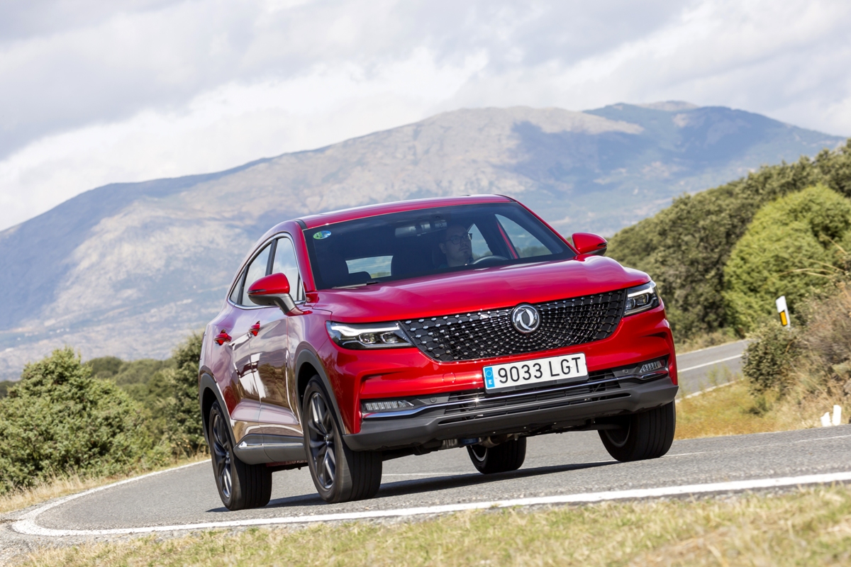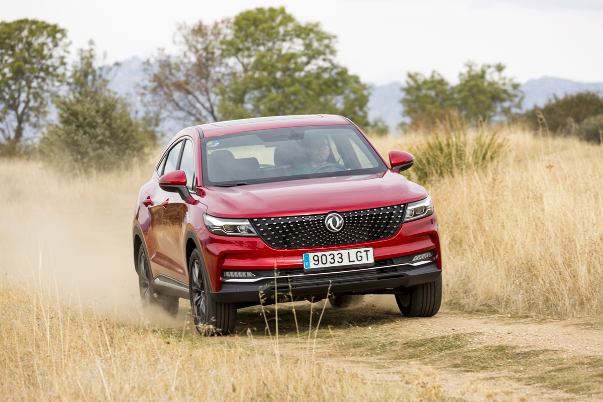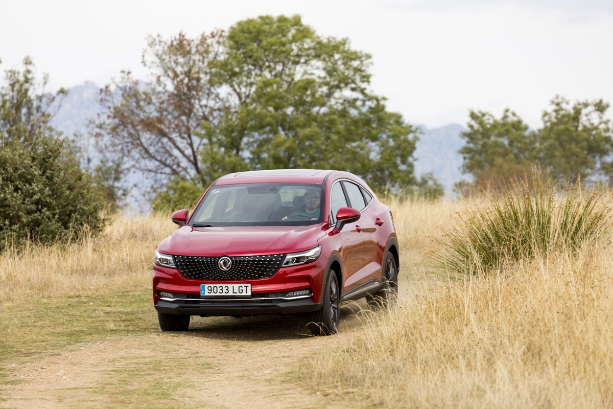 En materia de chasis, el tacto es correcto. La dirección, aunque poco informativa, ofrece un tacto agradable y mantiene bien la trayectoria. Nada que ver, sin ir más lejos, con las de algunos coreanos de hace una o dos generaciones, que eran malas y obligaban a hacer correcciones constantes en el volante. En este sentido, en DFSK apuntan en la buena dirección, como también lo han hecho con una puesta a punto de chasis que hace que el coche sea cómodo, aunque no especialmente ágil. Esto último no termina de casar con la imagen de deportividad que transmite el diseño exterior, pero tampoco supondrá ningún problema para quien busque un coche para hacer desplazamientos confortables, sin más. A los mandos, el conductor tiene sensaciones a mitad de camino entre un SUV y un todoterreno, especialmente a la hora de afrontar curvas, con un balanceo de carrocería más acusado de lo habitual. Desde luego, no es un coche pensado para correr, ni por la configuración de la suspensión ni por el conjunto motor/cambio. Esto conviene tenerlo en cuenta para no llevarse sorpresas.