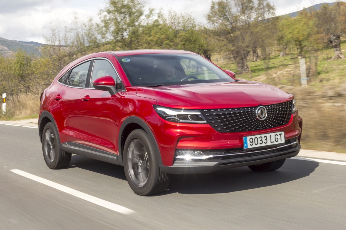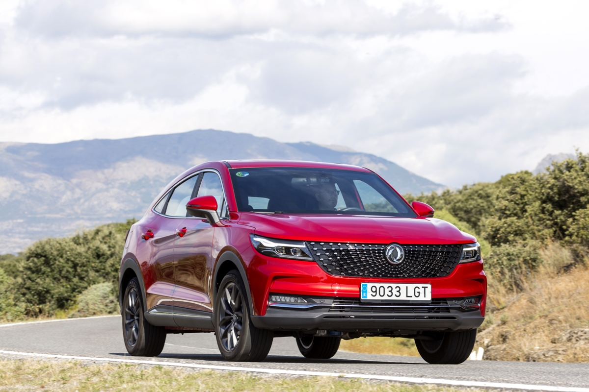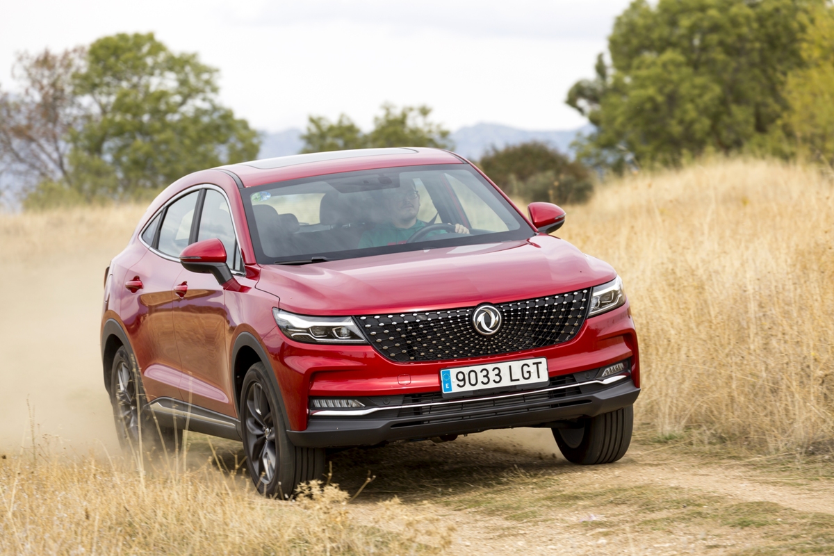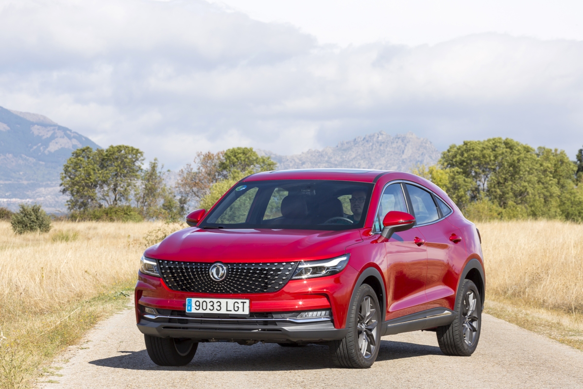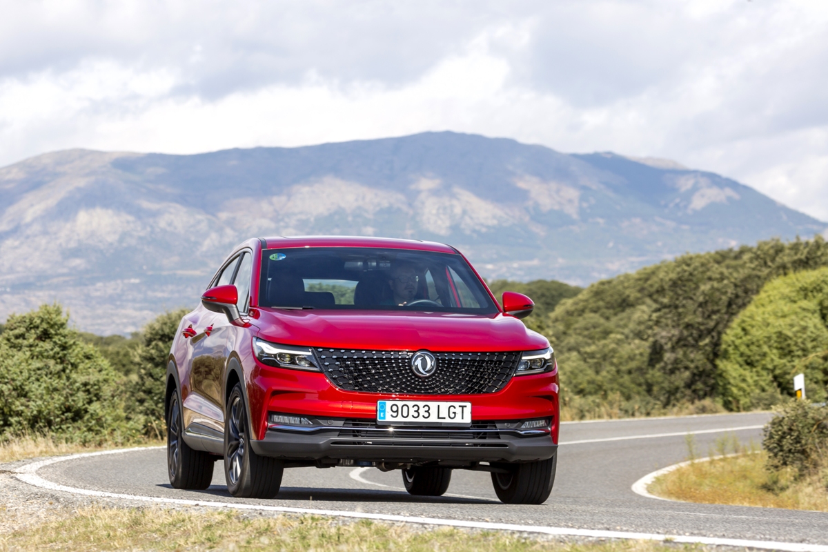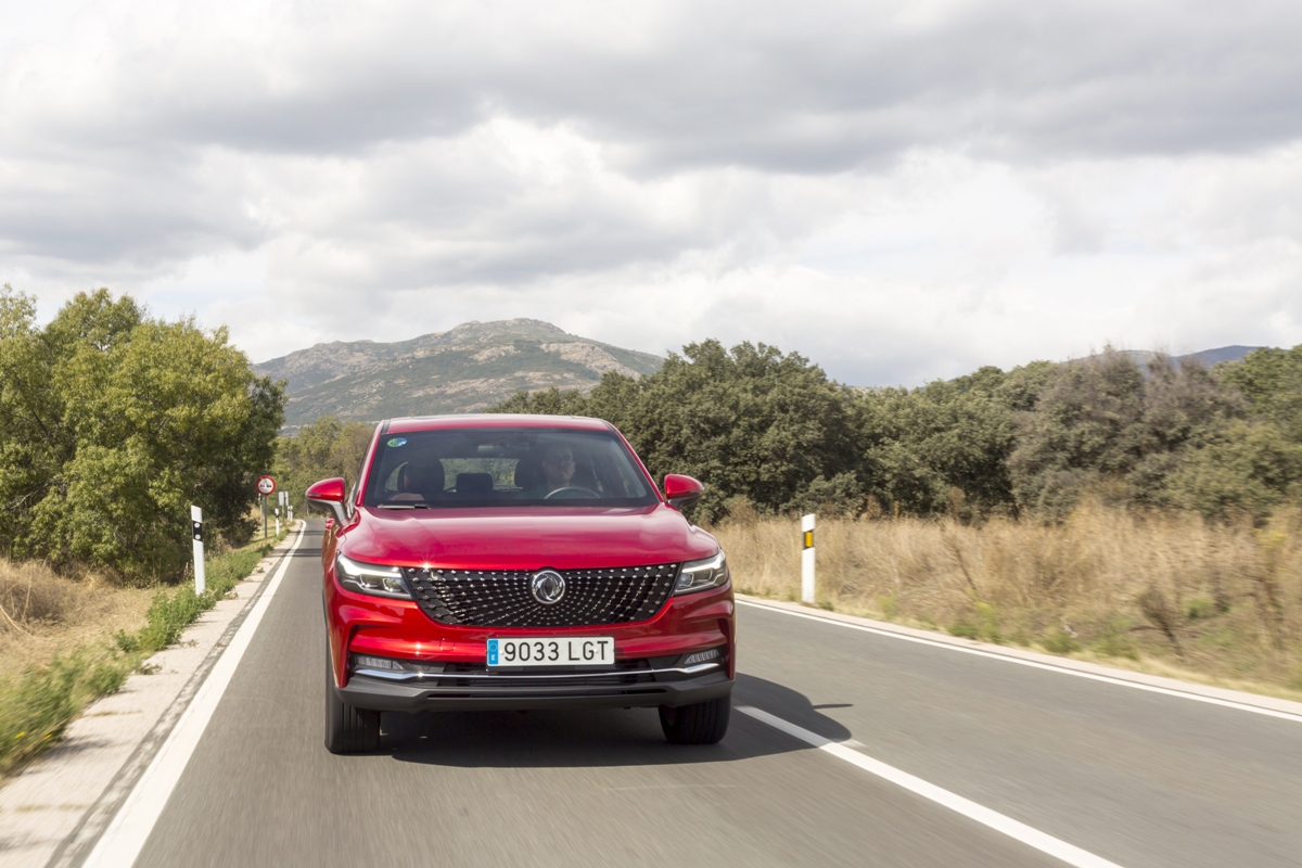En materia de chasis, el tacto es correcto. La dirección, aunque poco informativa, ofrece un tacto agradable y mantiene bien la trayectoria. Nada que ver, sin ir más lejos, con las de algunos coreanos de hace una o dos generaciones, que eran malas y obligaban a hacer correcciones constantes en el volante. En este sentido, en DFSK apuntan en la buena dirección, como también lo han hecho con una puesta a punto de chasis que hace que el coche sea cómodo, aunque no especialmente ágil. Esto último no termina de casar con la imagen de deportividad que transmite el diseño exterior, pero tampoco supondrá ningún problema para quien busque un coche para hacer desplazamientos confortables, sin más. A los mandos, el conductor tiene sensaciones a mitad de camino entre un SUV y un todoterreno, especialmente a la hora de afrontar curvas, con un balanceo de carrocería más acusado de lo habitual. Desde luego, no es un coche pensado para correr, ni por la configuración de la suspensión ni por el conjunto motor/cambio. Esto conviene tenerlo en cuenta para no llevarse sorpresas.