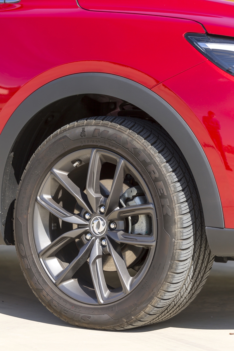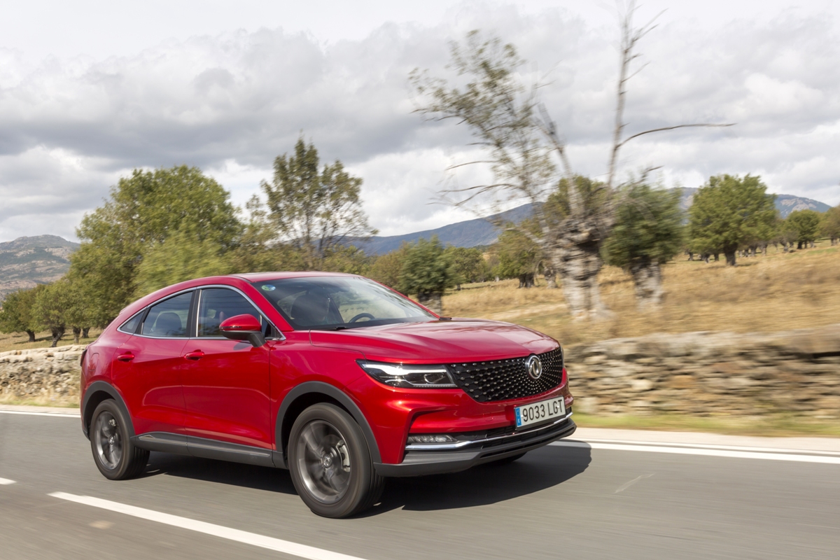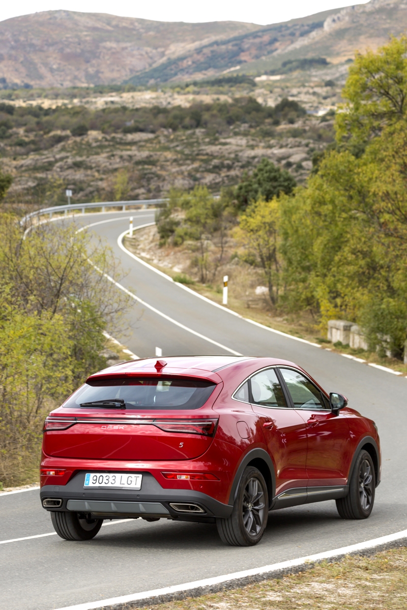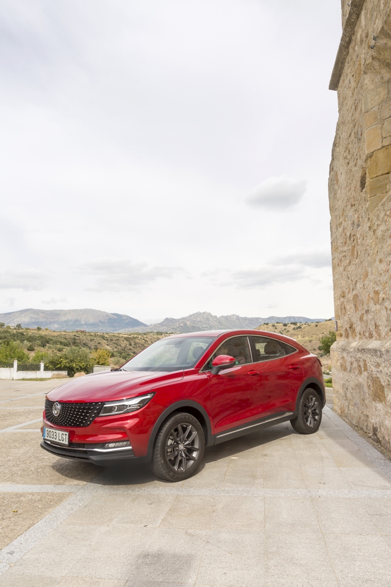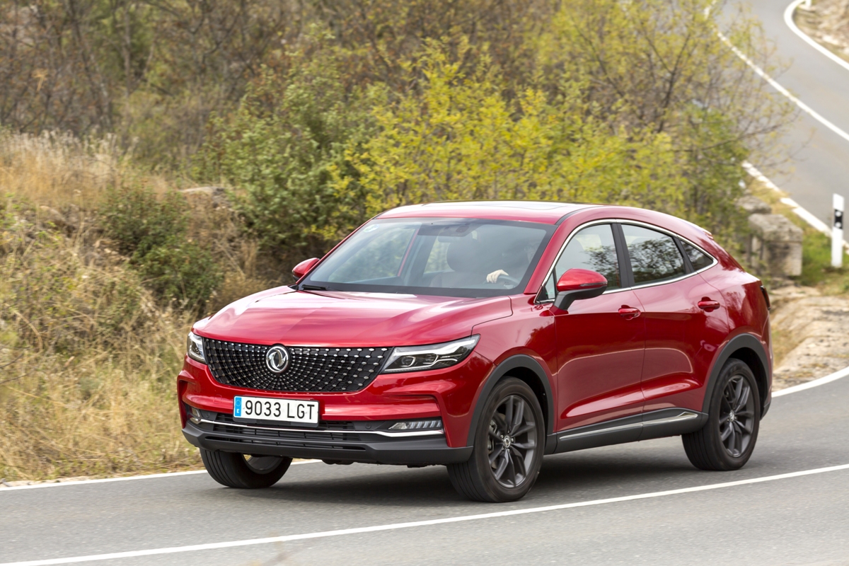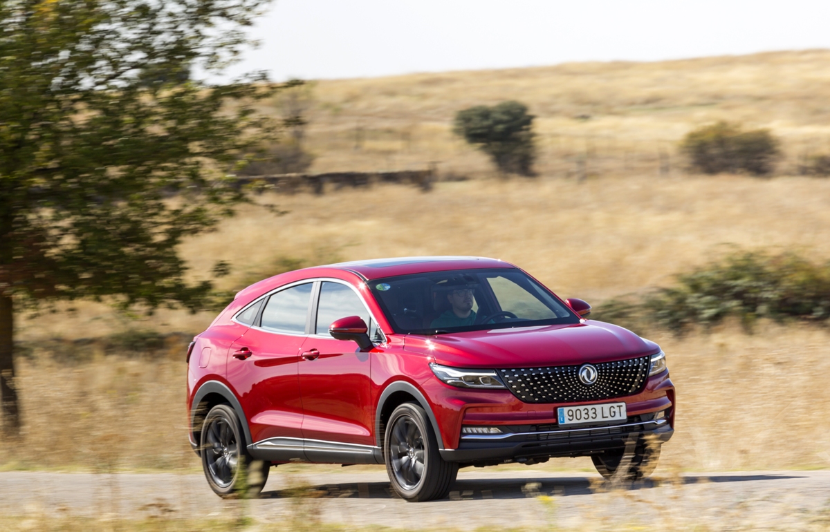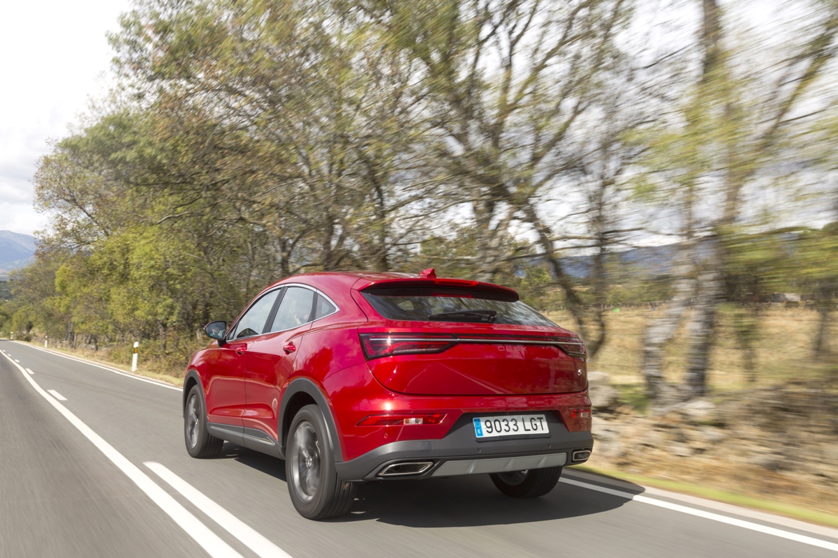 En materia de chasis, el tacto es correcto. La dirección, aunque poco informativa, ofrece un tacto agradable y mantiene bien la trayectoria. Nada que ver, sin ir más lejos, con las de algunos coreanos de hace una o dos generaciones, que eran malas y obligaban a hacer correcciones constantes en el volante. En este sentido, en DFSK apuntan en la buena dirección, como también lo han hecho con una puesta a punto de chasis que hace que el coche sea cómodo, aunque no especialmente ágil. Esto último no termina de casar con la imagen de deportividad que transmite el diseño exterior, pero tampoco supondrá ningún problema para quien busque un coche para hacer desplazamientos confortables, sin más. A los mandos, el conductor tiene sensaciones a mitad de camino entre un SUV y un todoterreno, especialmente a la hora de afrontar curvas, con un balanceo de carrocería más acusado de lo habitual. Desde luego, no es un coche pensado para correr, ni por la configuración de la suspensión ni por el conjunto motor/cambio. Esto conviene tenerlo en cuenta para no llevarse sorpresas.